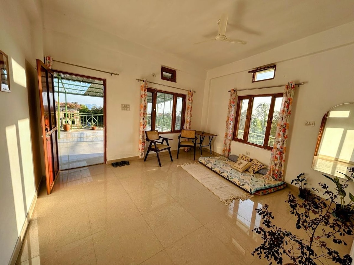 Perfect long term gateway or WFH station for family & group of friends A serene stay overlooking the rice farms with stunning mountain views, conveniently located away from the tourist hustle & yet close to the flying city Bir(2Km). The bathroom(not attached) is a mix of village style feel with modern amenities, has a shower, geyser & western style seat in a separate cubicle. Kitchen is fully functional with fresh supply of vegetables from garden along with basic ingredients supply.