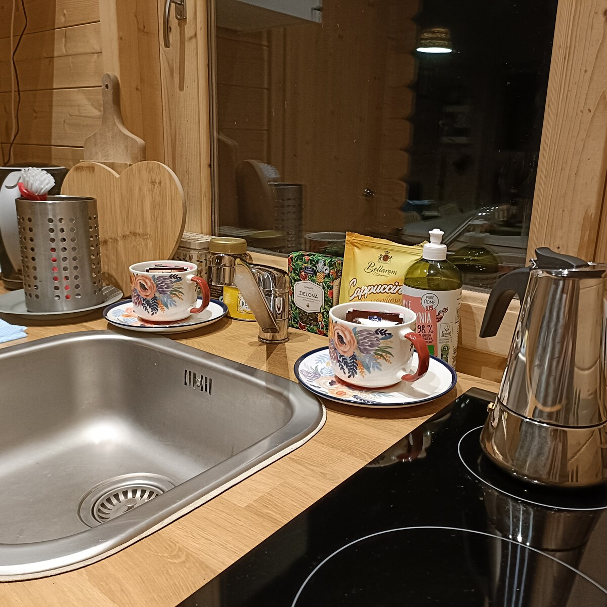 Our spacious home includes a living room with a kitchenette, a bathroom, and two bedrooms upstairs. It is surrounded by a beautiful garden. The house is located in the Grounds of the Karkonosze Mountains, near the waterfall, and it's the perfect place for walnuts and people looking for peace and quiet in the mountains. For the little ones, there is a playground with a cottage, a slide, swings, and a sandbox. We have an 8-person sauna and a hot barrel - for an additional fee