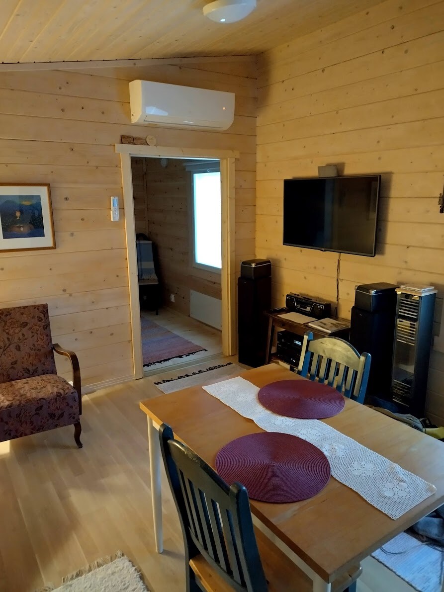 Come and visit us in the countryside, in a small village. This well-equipped cottage and sauna is made for a break from the hustle and bustle of the city. In the summer, there is a wonderful village culture around – the restaurant Wonkamies and the harbor café are next door. A completely renovated log cabin combines a traditional cabin atmosphere with modern comforts. As an additional service, a large tub is also available. A short drive to Himos Ski resort, Isojärvi National Park and Serlachius museums, only 30-65 km. Just 28 minutes for lust.