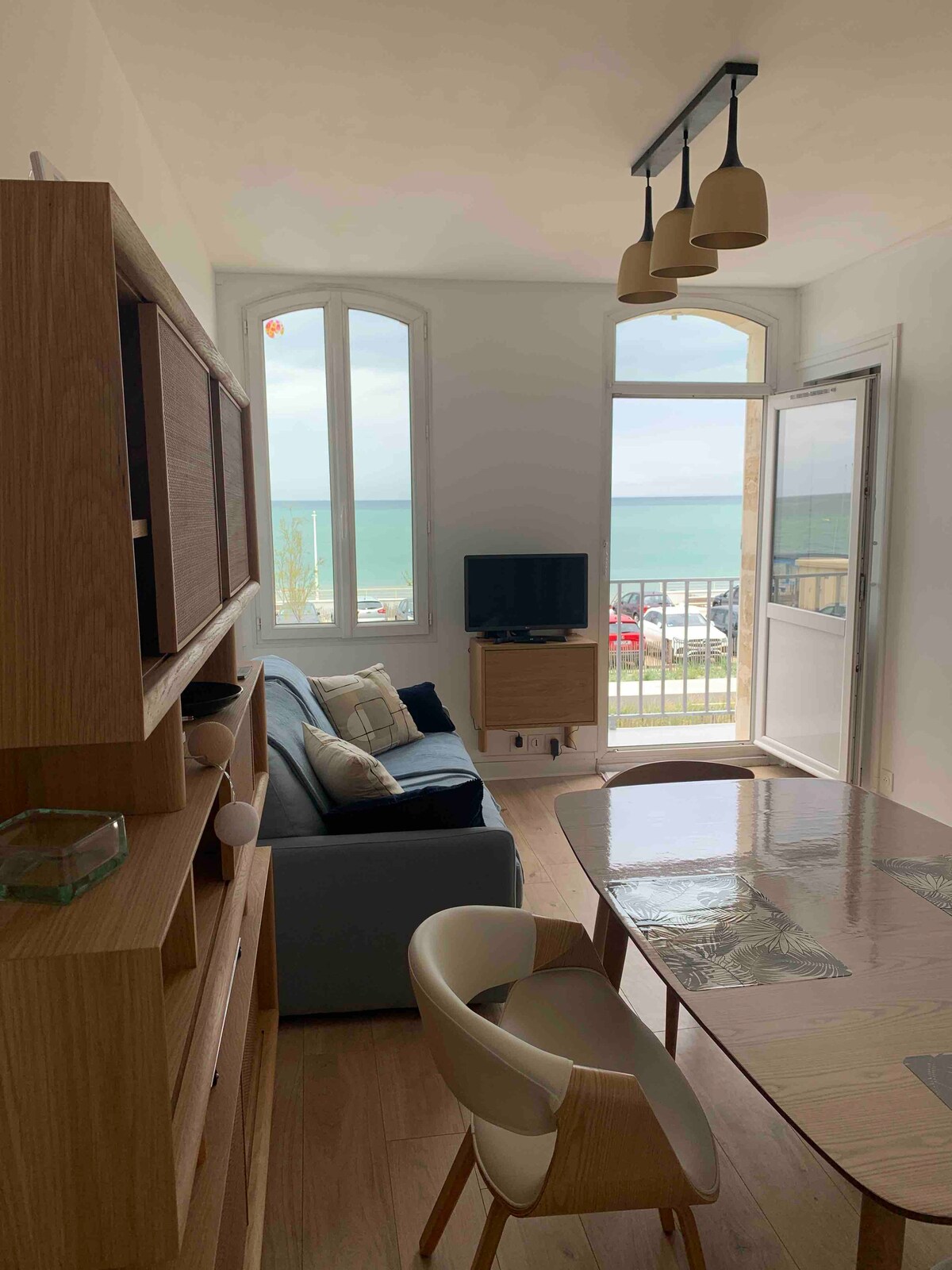 Enjoy a very nice bright and comfortable apartment, ideally located facing the sea. This entire home has 2 bedrooms, a warm living space and a layout designed for your well-being. You will enjoy the stunning sea views, walking distance to the beach, shops and restaurants, as well as free parking on site. Perfect for discovering the D-Day beaches and enjoying a relaxing stay by the water.