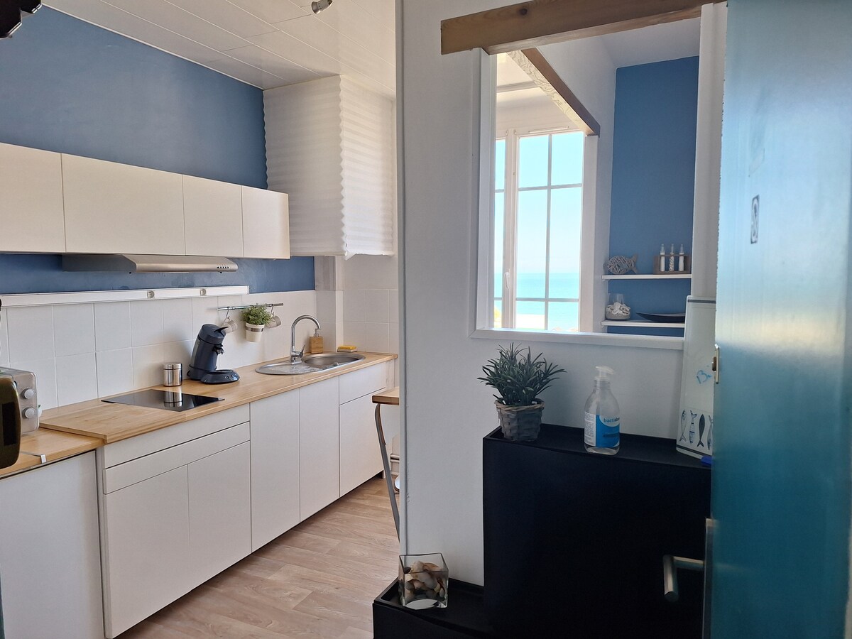 Discover the charm of Luc-sur-Mer from our cozy studio, perfect for 4 guests. Nestled on the 2nd floor of a quiet residence, our 24m² space, recently renovated, offers a breathtaking view of the vast sea, promising unforgettable sunrises and sunsets right from your window. Your ideal address is just steps away from all the necessary shops for a carefree stay. Leave your car behind; here, everything is within walking distance.