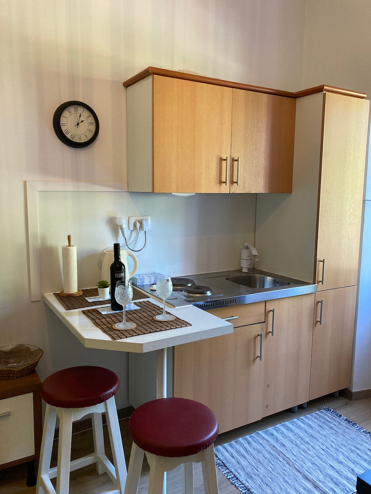 • New smaller Cozy Flet “studio” in the Center of Portoroz, less then 200m from Central sand beach and one minute walk from main Bus station, super market and local bars and restaurants. The flat is in the building in the first floor on the right. This year with a new comfy bed.Private toilet is seperate from the room but only 2 meters down the hall. In front of the building is a free parking space for guests. FREE bicycles! (NEW AIRCONDITOING) Only Extra charge is TouristTAX 3.13€ for a per