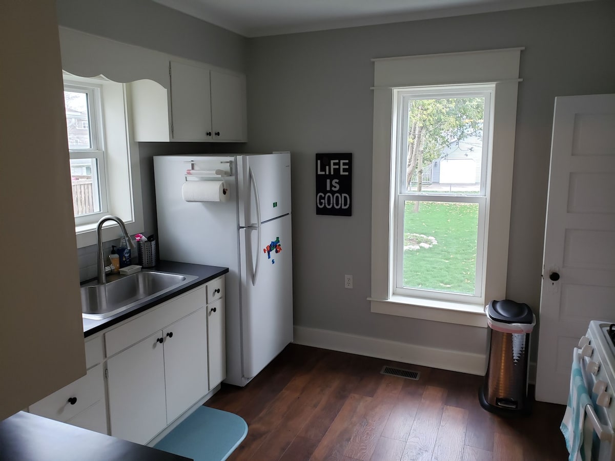 Adorable, recently renovated home in town with 3 block walk to the Stearns Public Beach. Sleeps 10. WiFi. Spacious fenced backyard. Grill and Firepit provided .Front porch (partially enclosed). Three bedrooms/1.5 bath - Main bath has a shower and separate tub. Take advantage of close proximity to downtown restaurants and shopping. Stop at House of Flavors for amazing ice cream. Hike one of the many trails at Ludington State Park. Walk the Pier to the lighthouse. So many thinks to see and do...