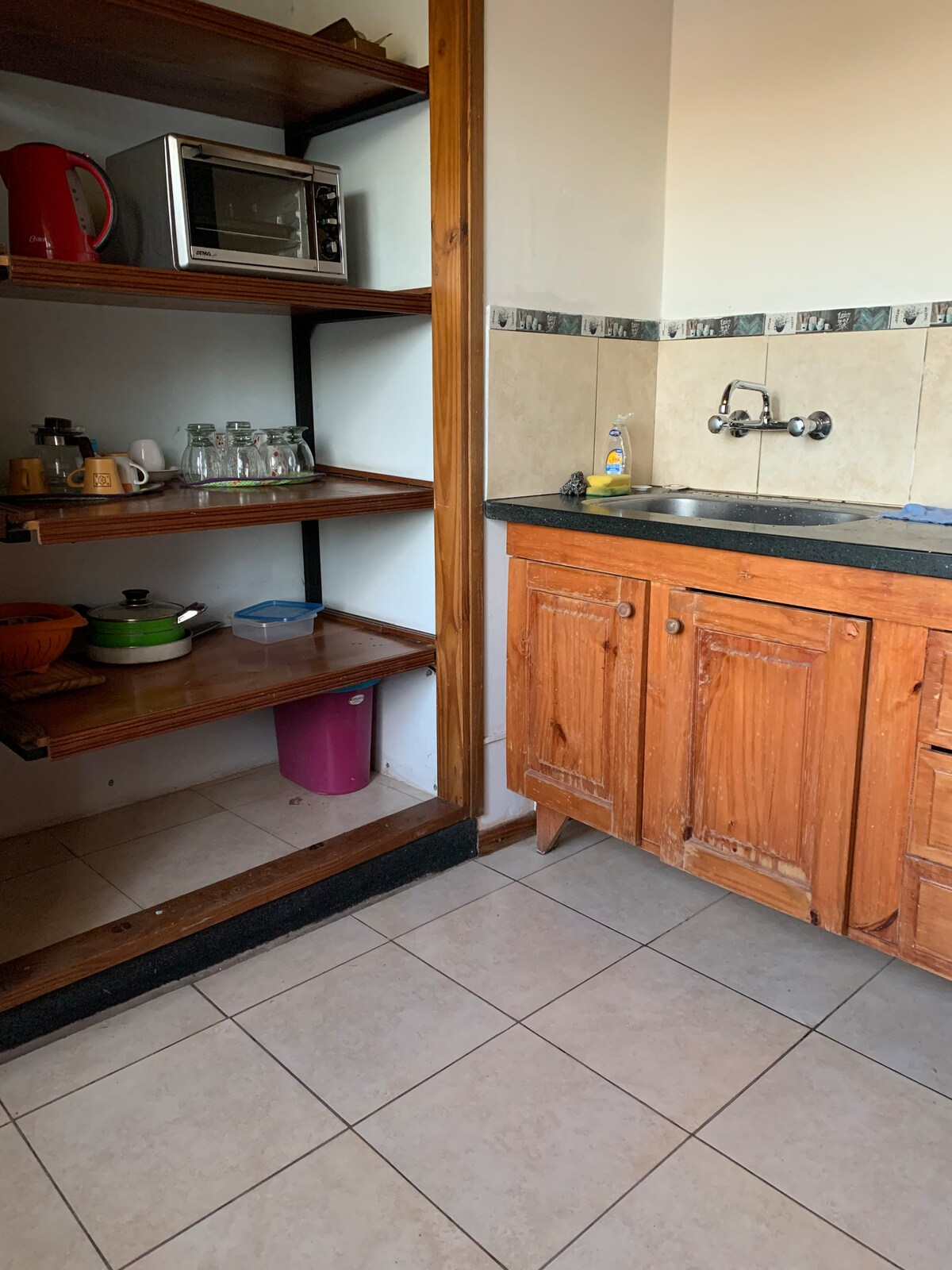 Very warm and bright studio apartment with small kitchenette and full bathroom. It has a garage to store a vehicle. Bedding, towels, shampoo, rinse, liquid soap and toilet paper are provided. It also has full crockery, toaster, small stove, refrigerator, music equipment and 32" smart TV. It is located near Chacras de Coria and Palmares Open Mall, which you can walk to. Also close to several gastronomic areas. Bus stop at the door.
