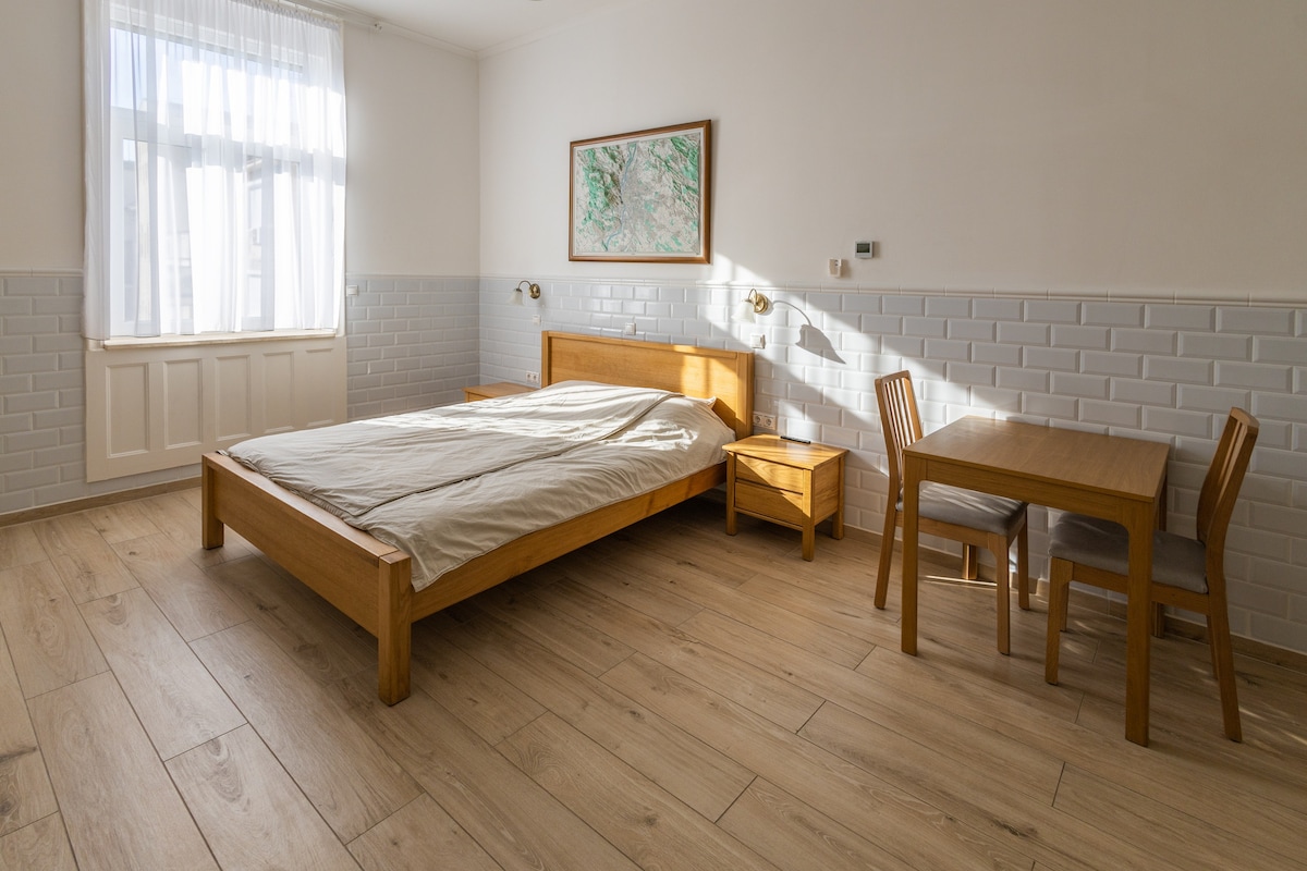 Our 40 sqm apartment is perfect for couples, good friends, or small family. The studio has a private entrance from the community corridor, a dining room, a well-equipped kitchen, a bathroom with shower, a cozy living room and a gallery room with a double bed. A soothing modernist interiors emphasizing comfort, harmonized proportions, and calming color palettes. The studio is by the Danube Riverside, steps from the Margaret Bridge, and surrounded by coffee shops, cafes, and restaurants.