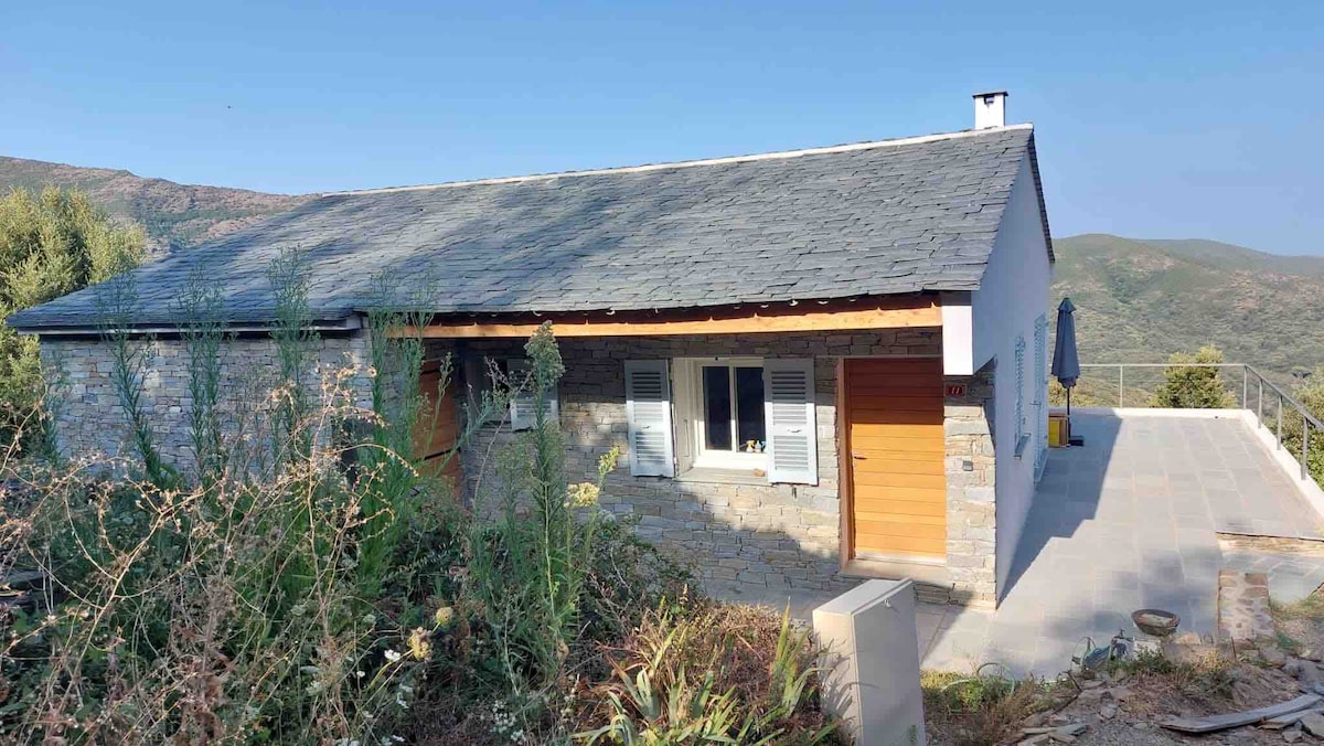 Charming stone residence in the region entirely built by the owner, respectful of the environment, between the sea, mountains and swimming pool (5-star rating). 5 minutes from the famous Gorges de l'Asco, river, waterfalls. 25 minutes from the most beautiful beaches of Balagne, Ostriconi, Lozari. In an unspoiled site, in absolute calm with a superb view. This place is perfect for a romantic getaway with private access to the owners' infinity pool. Fiber internet