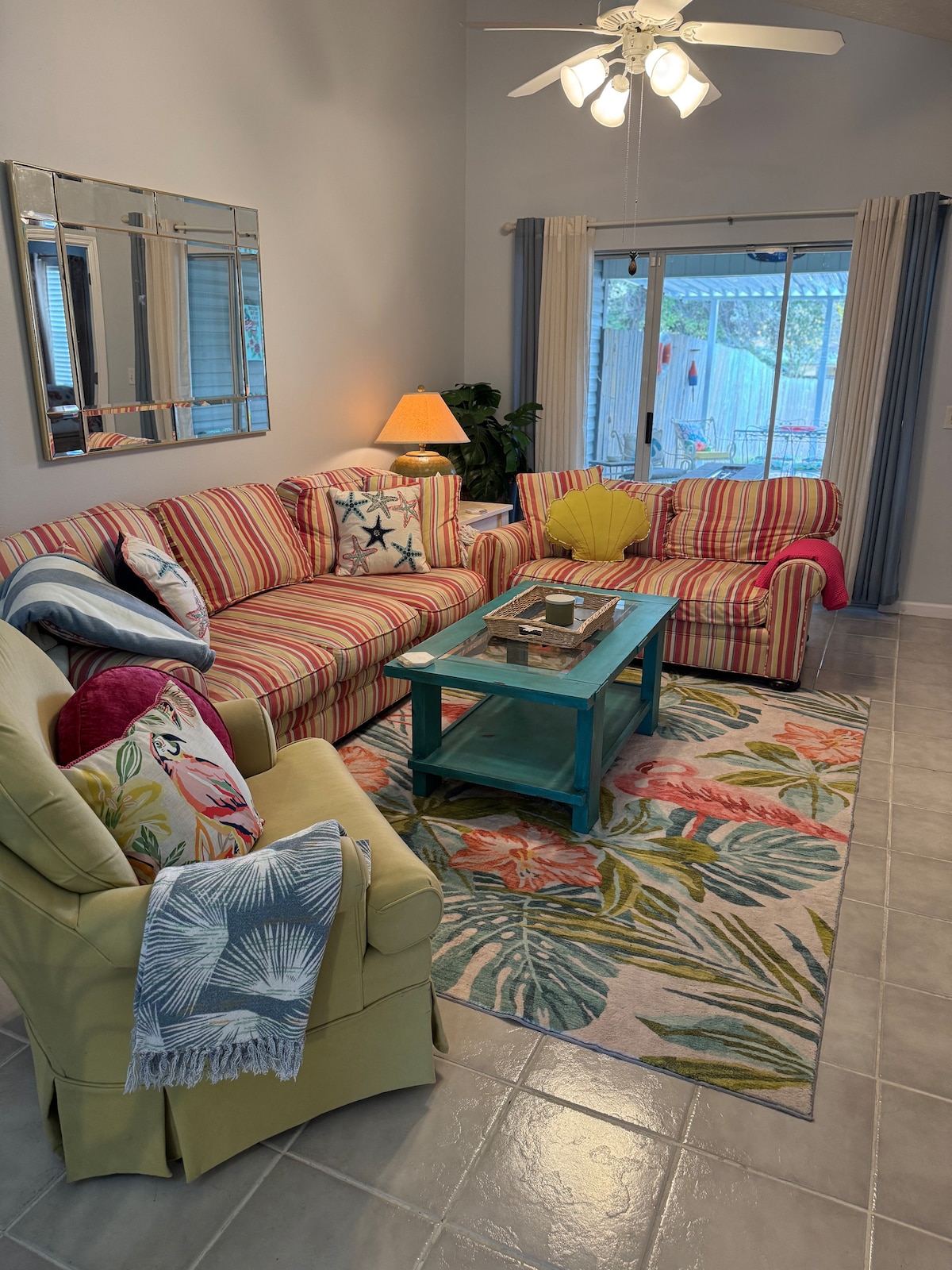 Welcome to Fan Palm Panama City Beach. We are located on the East end close to Thomas Drive and Highway 98. Our home features a private in-ground pool with lush landscaping and several outdoor sitting areas to enjoy your morning coffee, relax with a good book, or play yard games with the kids or pets. Inside our guests will find many upgrades with a fully equipped kitchen open to the dining, entertaining, and pool area. We welcome families and allow pets.