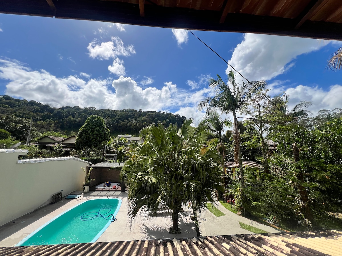House overlooking the Pedra do Peito do Pombo. Large outdoor space, with a swimming pool. Small pets are allowed. House located 2 km from Arraial do Sana, near the Sítio Val Paraíso inn. We do not provide blankets and towels. Sana is part of an Environmental Preservation Area (APA), so the USE OF LOUD SOUND AND FIREWORKS IS PROHIBITED.