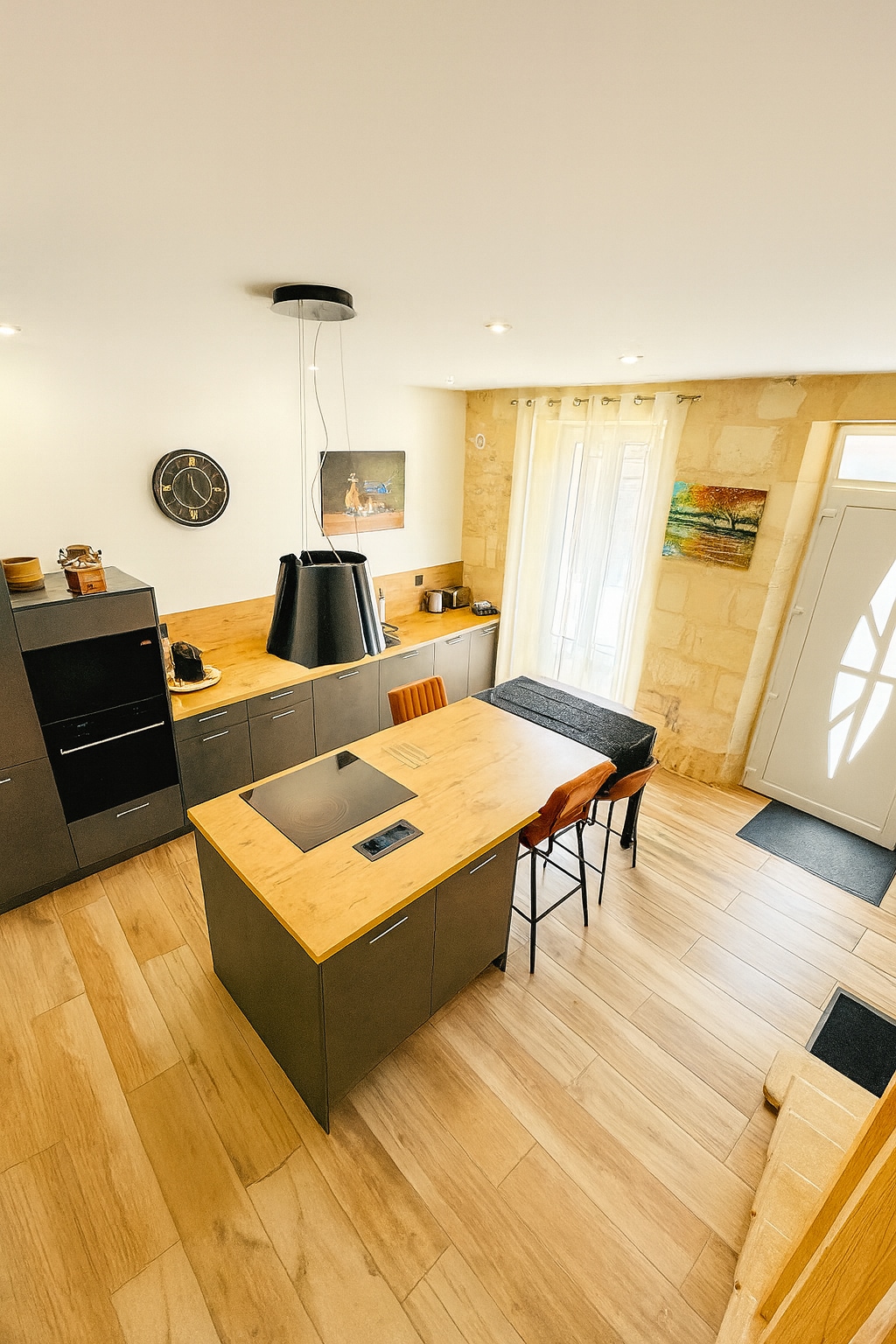 Treat yourself to a romantic getaway in this new 75 m² barn, completely renovated with refinement. Designed for calm and privacy, it has two elegant bedrooms and accommodates up to 4 people. Enjoy a private 2-seater hot tub, accessible all year round, for timeless moments for two. Private access and parking. 100 m from the city center and 20 min from Bordeaux. Pets not allowed. Options on request: champagne and breakfast on weekends.