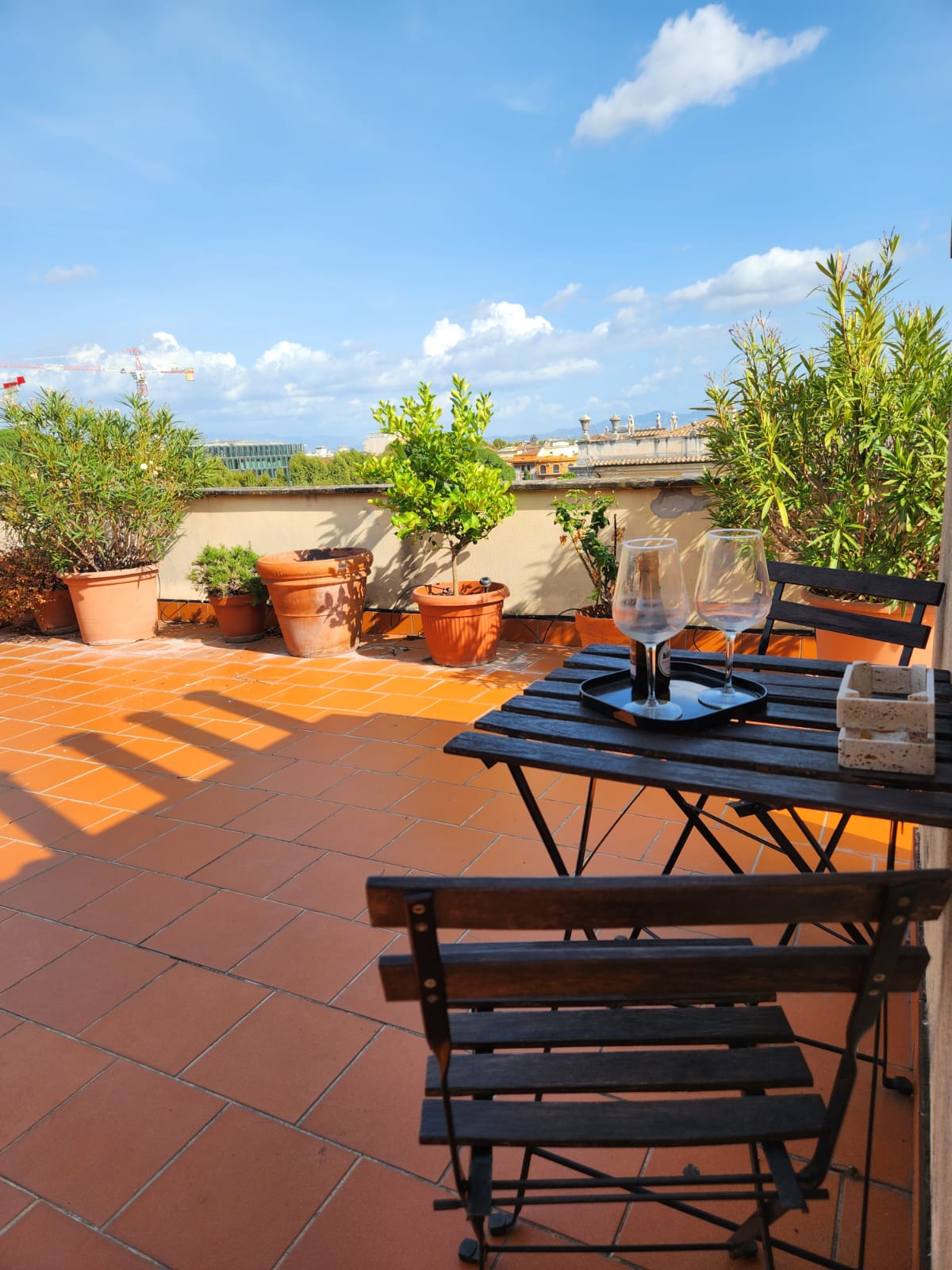 Benvenuti nel nostro accogliente attico con un terrazzo straordinario che offre una vista panoramica spettacolare sulla città eterna, Roma. Questo intimo rifugio urbano è il luogo ideale per una fuga romantica o una pausa tranquilla. Intimo e accogliente, perfetto per coppie. Posizione centrale per esplorare facilmente la città. Un rifugio tranquillo nel cuore di Roma. Rendete il vostro soggiorno a Roma davvero indimenticabile