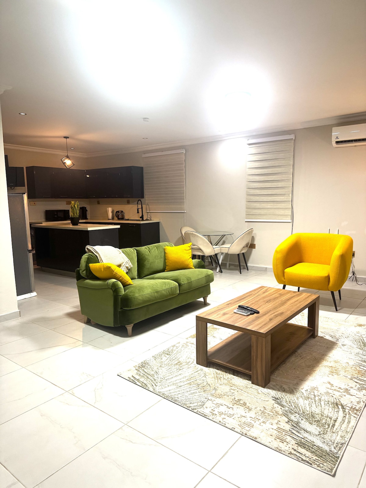 Modern comfort in a stylish, beautifully lit apartment with clean contemporary finish & a warm evening glow that instantly feels upscale & inviting. Located in a quiet neighborhood 19mins from the Airport, 17 from accra mall,10mins from Atlantic Mall, and about 30 mins from the Aburi Mountains, offering easy access to shops, business hubs & leisure centers ..You’re never far away from everything you need yet still tucked away enough to relax & unwind. A chic retreat you’ll love coming home to.