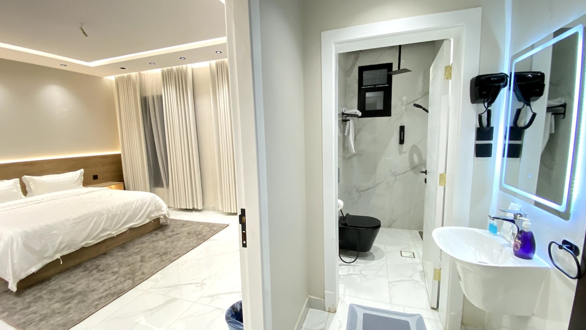 Welcome to our luxury apartment, In the heart of the Prophet's city, experience luxury and comfort at the same time, as we have provided you with an ideal mix of modern comfort, whether you are here for work or leisure, our carefully designed residence guarantees you an unforgettable stay, as it is about 4 minutes by car and 18 minutes on foot from the Prophet's Mosque, and it is also located in the heart of the city and in the middle of a main street, making it easy for guests to access all services, shopping and restaurants