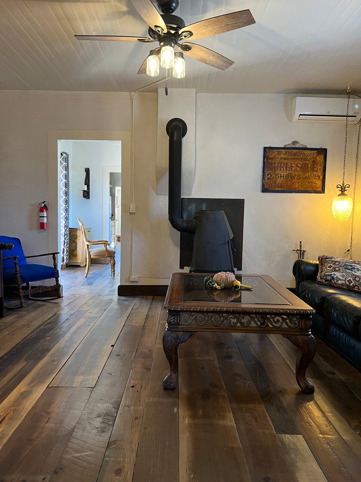 Enjoy a modern space in downtown Madrid in an historic Miner Shack! You can walk to the restaurants, galleries, coffee shop, live music…in 1 minute from your place. There are also 2 patios for you for stargazing and hanging outside with a firepit! It’s centrally located between Santa Fe (20 minutes) & Albuquerque (45 minutes). It’s a 5 minute drive to hiking, biking and Mountain Views. (Please note: this Airbnb is in the village of Madrid as your map shows, not Los Cerrillos). Lic#23-6049