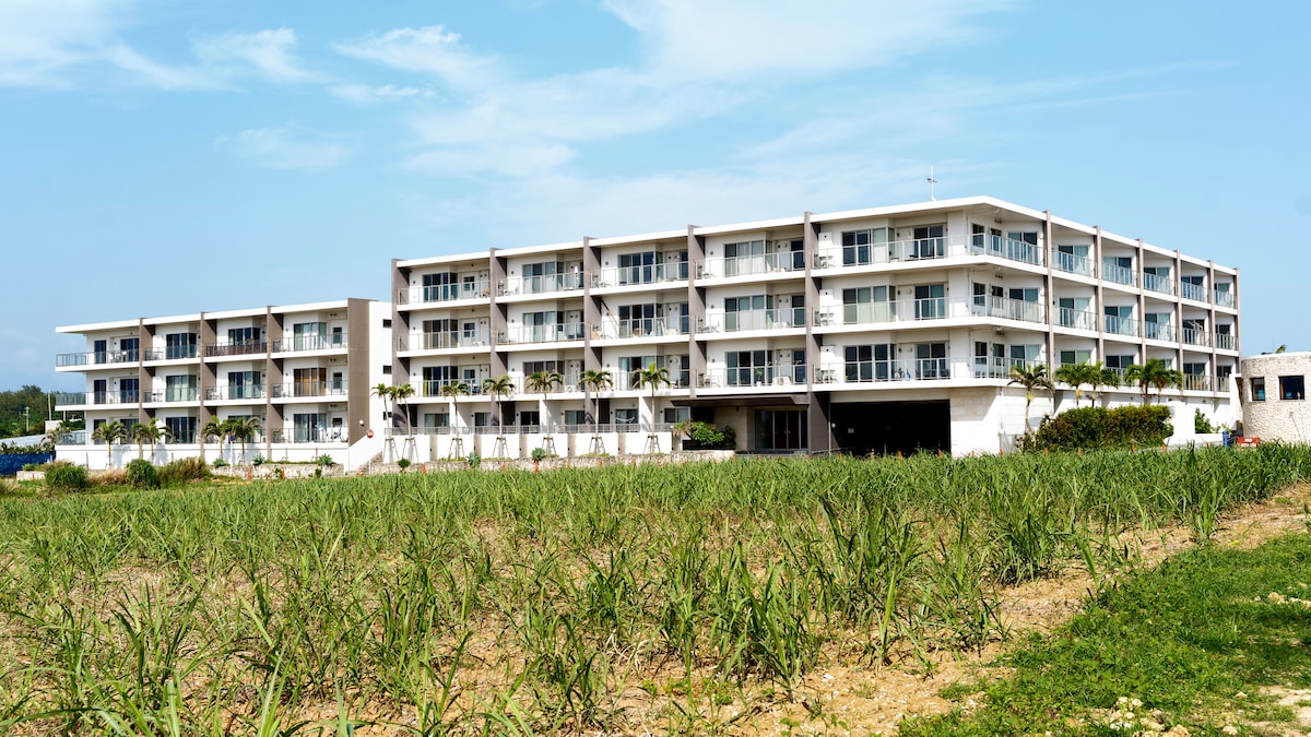 "Enjoy a relaxing time in a room with a view of the sea." This is a private condominium-style room with the blue sea of Okinawa right in front of you. From the window of the room you can enjoy a sparkling sea view, and it is a short walk to a beautiful beach with white sand. You can easily enjoy snorkeling, swimming, and marine sports. Perfect size for couples or parents and children. Enjoy a relaxing stay in a spacious, open-plan room with the bedroom walls removed. We also have chairs and beds for children. The theme color of the room is turquoise green, inspired by the sea. Wrap yourself in a gentle, calm color and relax, forgetting the hustle and bustle of everyday life. Female guests will be happy to have a hair dryer and hair iron, so you can properly groom yourself while traveling. And the best seat of all is the veranda overlooking the sea. Coffee time wrapped in the morning light, a relaxing time at dusk... every time will turn into a special memory for you. Why not enjoy a luxurious daily life in this room with the sea of Okinawa, a pleasant breeze, and a special time? ^_^