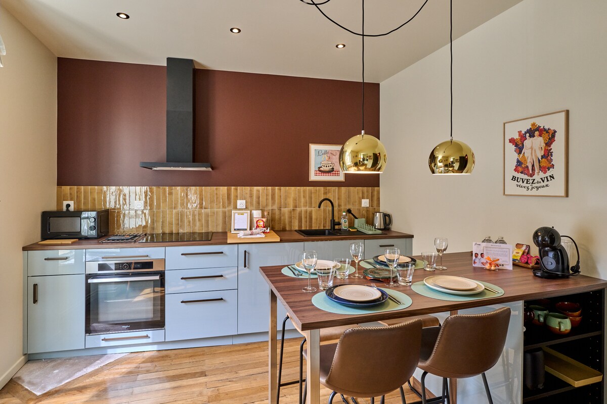 Posez vos valises au cœur de Nevers ! À deux pas de la gare, du centre-ville, de l’IFSI, de l’IPMR et de la chasse Sainte-Bernadette, cet appartement rénové et climatisé offre tout le confort pour un séjour agréable. Profitez d’un jardin clos avec terrasse, BBQ et salon d’extérieur. Deux lits doubles, cuisine équipée, salle de bain moderne, stationnement gratuit dans la rue, abri à vélos sécurisé. Idéal pour 3 adultes ou 2 adultes + 2 enfants.