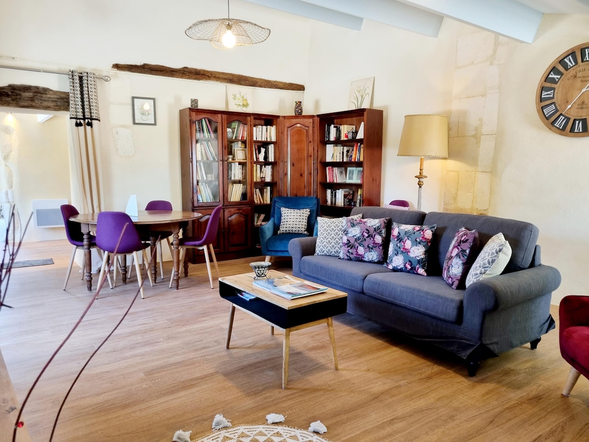 Relax in this 47 m2 apartment located in a 19th century stone building, with every comfort in a cozy chic style, mixing modern and vintage in the heart of the Cognac Grande Champagne vineyards. Enjoy walks in Saint-Même-les-Carrières, river hikes on the Charente, nearby activities, paddleboarding, waterskiing, canoeing, kayaking, bike discovery as well as many visits such as museums and the big Cognac houses.