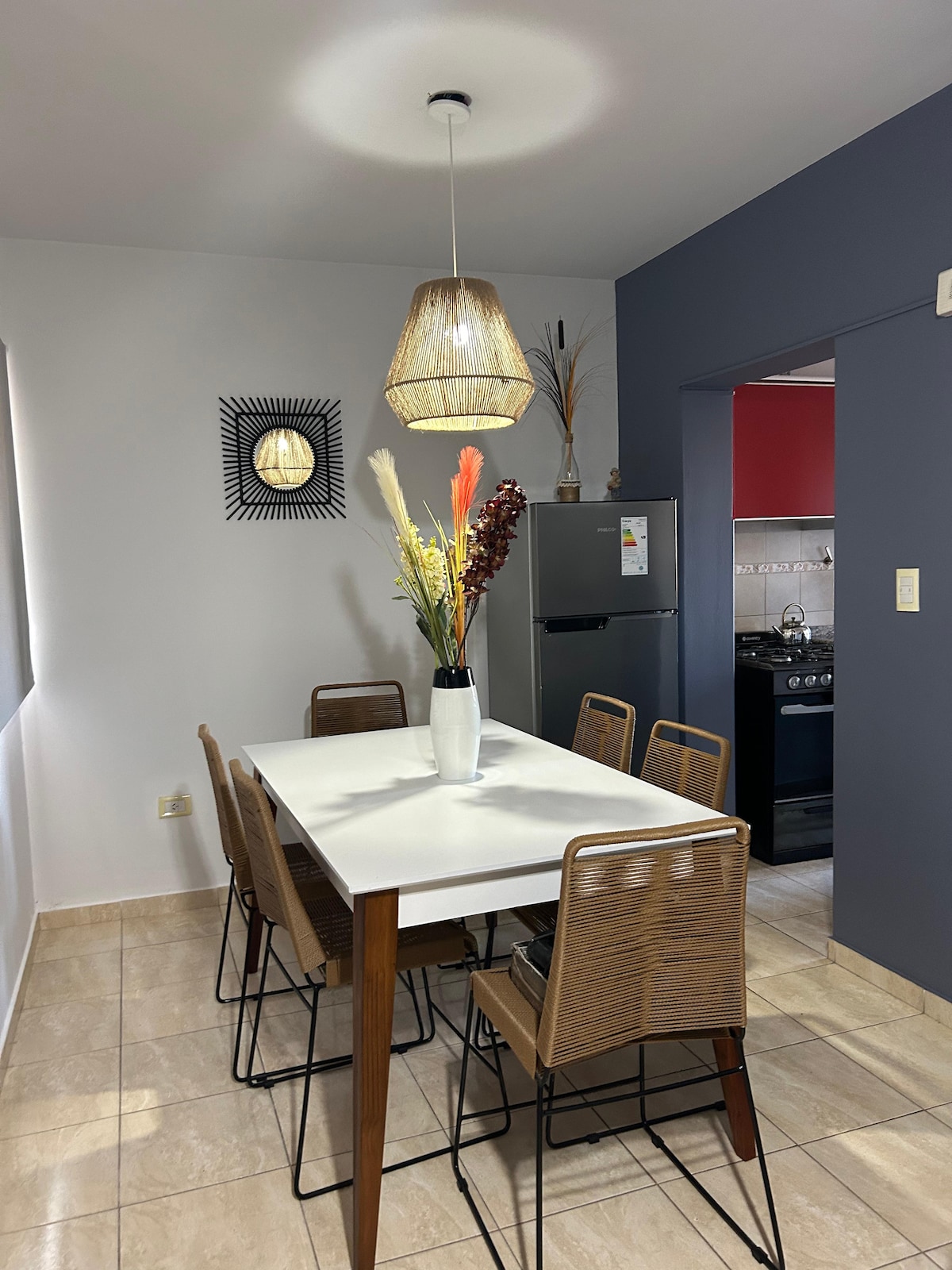Departamento en P. Baja, en complejo privado, moderno y confortable. Ideal para descanso, recreación, viajes de negocios o turismo. Ubicado al lado de un centro comercial en el corazón de la sexta sección, y enfrente de supermercado. Además, a 15 minutos caminando del Parque General San Martín y de la Calle Arístides VIllanueva, principal arteria de comercios gastronómicos. Cuenta con excelentes medios de transporte público (Colectivos, taxis, remises, etc.). De fácil acceso desde aeropuerto.