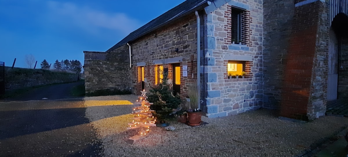 Pleasant, luxury, warm, comfortable cottage, surrounded by nature with a beautiful view of the Ardennes, large private garden with swing, private parking in front of the house. New high speed wifi. Last house at the top of a pretty little village, on a dead end road, 150 m from the forest. Perfect for walks. For 2 adults and possibility of 1 child and 1 baby. 1 hour 15 minutes from Brussels, Liège, Lux. 4km from the Meuse valley. Tennis!! under construction. Spa pool 15' Golf 12'..