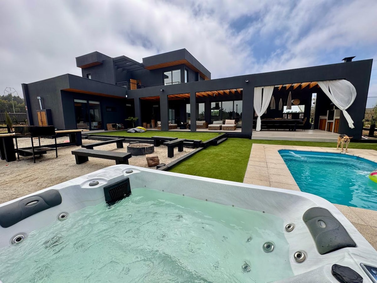 Beautiful large house between Puchuncavi and Maitencillo, Large pool at room temperature. Hot tub (40°), pool table, table tennis, darts, dollhouse, gazebo, and fire pit 11 minutes from the beach by car (8 km) Surrounded by forest, large grass garden with capacity for 14 people in 5 rooms (3 double, 2 of them en suite) very comfortably. Wi-Fi (Starlink 150mb)