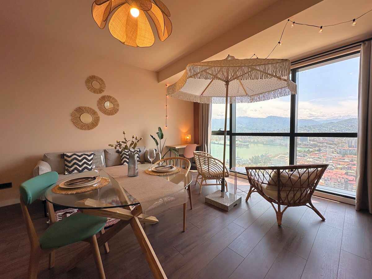 Boho-style studio in the historical center of Batumi — Porta Batumi Tower ? Panoramic windows with a breathtaking view of the sea, mountains, and city - Perfect cleanliness and freshness! - Excellent soundproofing! - Warm floors! ? Nearby: ? The sea is a 2-minute walk away, and there is a park and boulevard right outside the building ? The Old Town, Europe Square, restaurants, cafes, and casinos are just 5 minutes away. ? Convenient parking near the house