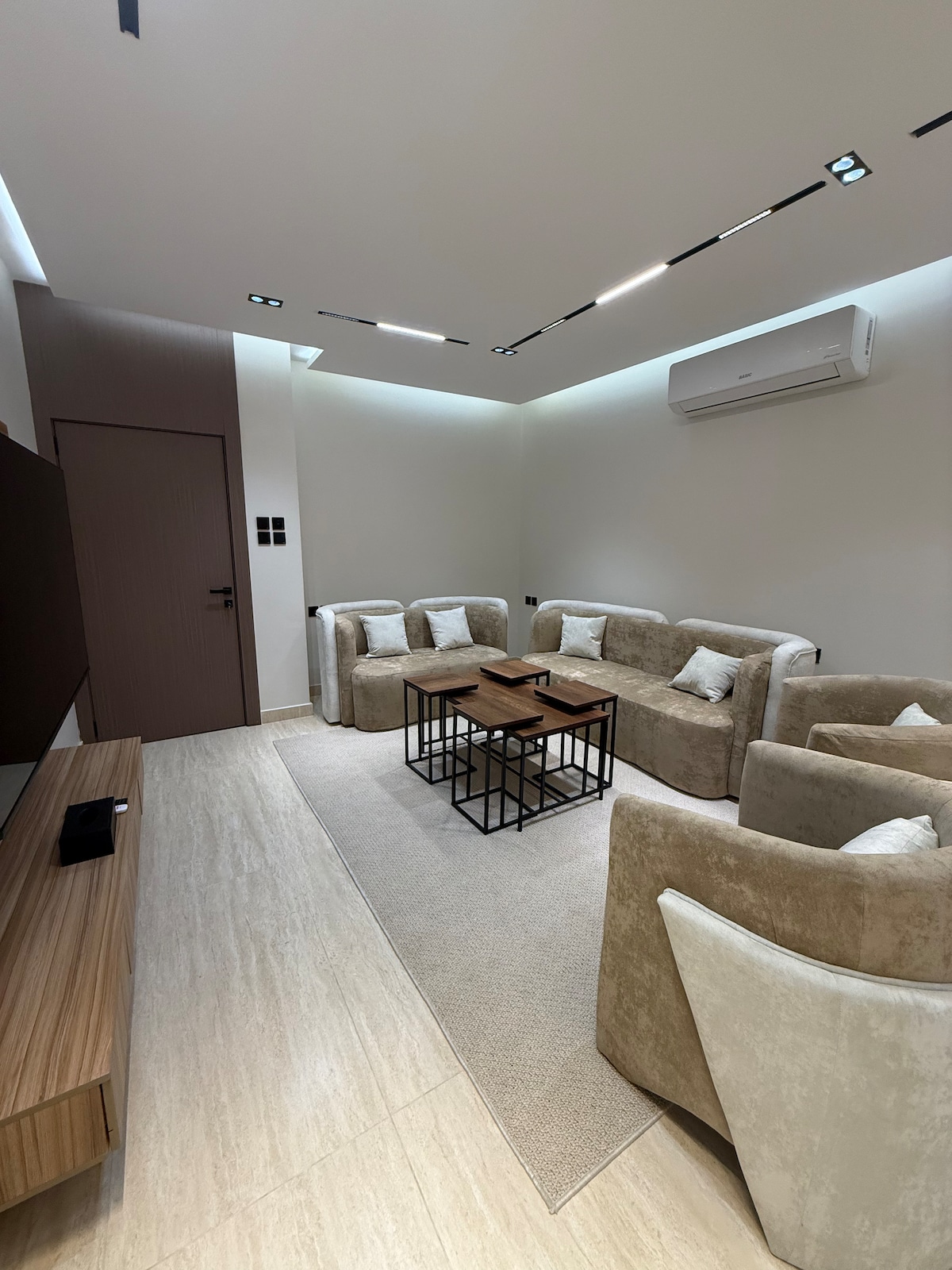 فيلا أنيقة بتصميم حديث وخصوصية عالية، مناسبة للعوائل والتجمعات الصغيرة. غرفتين نوم، مجلسين، 3 دورات مياه، ومطبخ مجهز مع طاولة طعام. مدخل خاص وفناء واسع بجلسة خارجية، مع إنترنت سريع وشاشات ذكية. موقع مميز قريب من الخدمات، مناسبة للإجازات القصيرة، والاسترخاء في أجواء هادئة و راقية