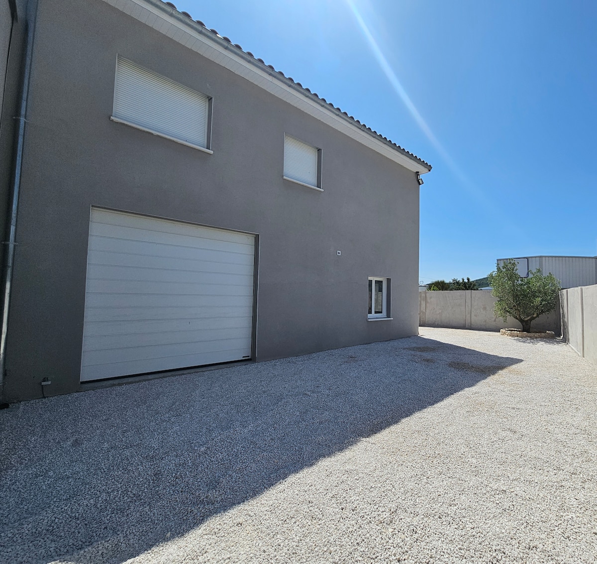Air-conditioned accommodation of 60 m2 located less than 5 minutes from the Montélimar SUD highway exit in an ARTISANAL area. It has a fitted kitchen, a living room with a desk, a sofa bed, a bathroom, two bedrooms (one with a double bed, another with two single beds) Bedding and towels provided Parking. The accommodation is not in the middle of the forest, otherwise the price would not be the same. Please do not give a bad rating on the location. camera at the entrance