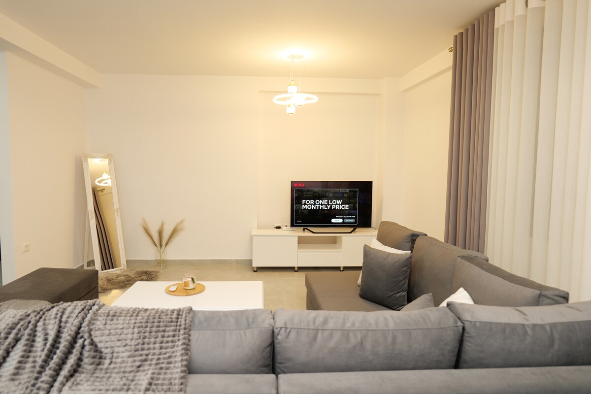 Welcome to my cozy 1-bedroom apartment located in the heart of Korçë, the cultural capital of southern Albania! Whether you're here for the history, local food, or to explore the beautiful countryside, this stylish apartment offers the perfect base for your stay. The apartment features a spacious bedroom with a comfortable queen-sized bed, a modern living room with a sofa bed (perfect for additional guests), and a fully equipped kitchen to make you feel at home.