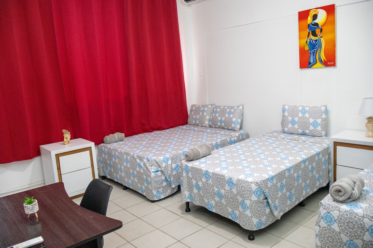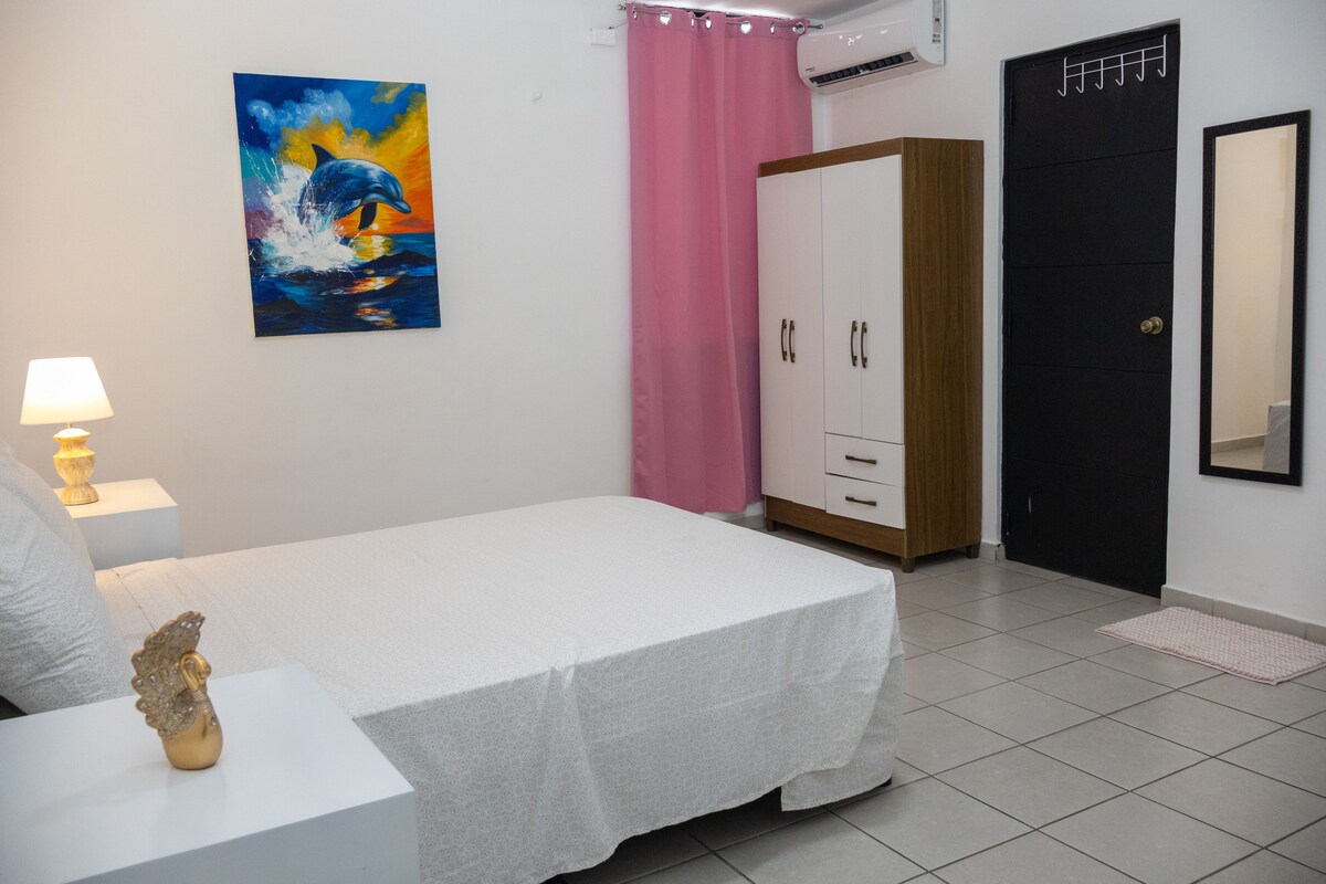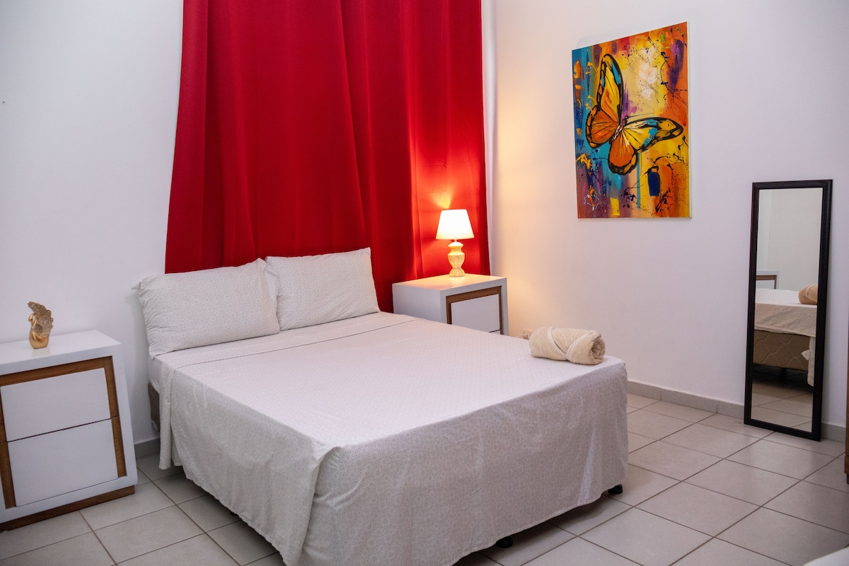 Double room with fan in the heart of Managua. Perfect for couples or travelers looking for comfort and price in the center of the capital. Features: * Capacity: 2 people. * Beds: It has 1 double bed with a comfortable mattress. * Bathroom: Private and clean bathroom. * Amenities: Fan. * Location: El Dorado Residential. Enjoy the energy of Managua and the common areas of our hostel.