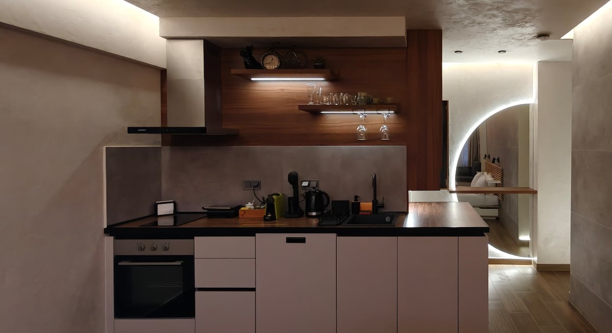 Unique, sea-view, fully equipped apartment (30m2) in the center of Thessaloniki, in front of SKG Port, one short breath from the sea, right next to Ladadika! The apartment was redesigned in 2026. The beton ciré technique is harmonically applied to provide the necessary tranquilty and warmth to the atmosphere. Contactless and keyless check-in and check-out is provided according the highest smarthome protocols! Enjoy your stay at Celestial Luxury SKG Port! Make your holidays unique!