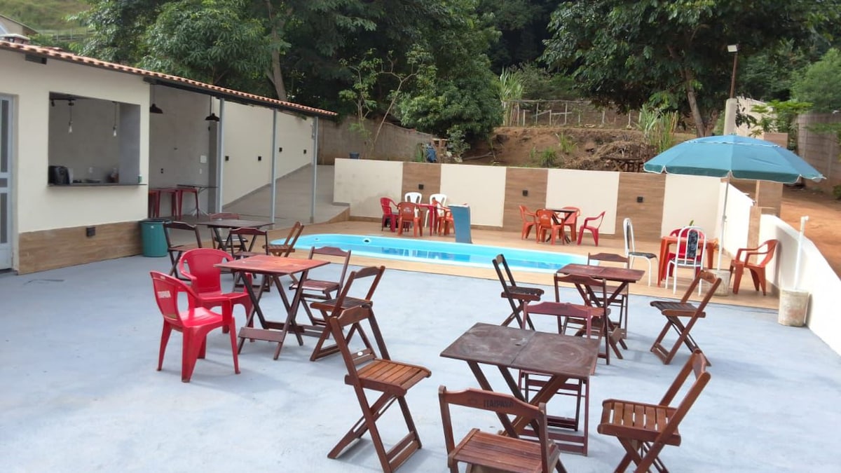 Relax with the whole family in this quiet accommodation. Just 3.5 km from Manhuaçu, this house in the midst of nature is ideal for rest and leisure. With 4 bedrooms (including one en-suite), it accommodates up to 10 people and has a full kitchen, living room with TV and internet. The outdoor area has a swimming pool, barbecue, hammocks, sun loungers, a soccer table, an outdoor bathroom, as well as parking and security cameras. Perfect for celebrations, and can accommodate more people in the pool area (on request).