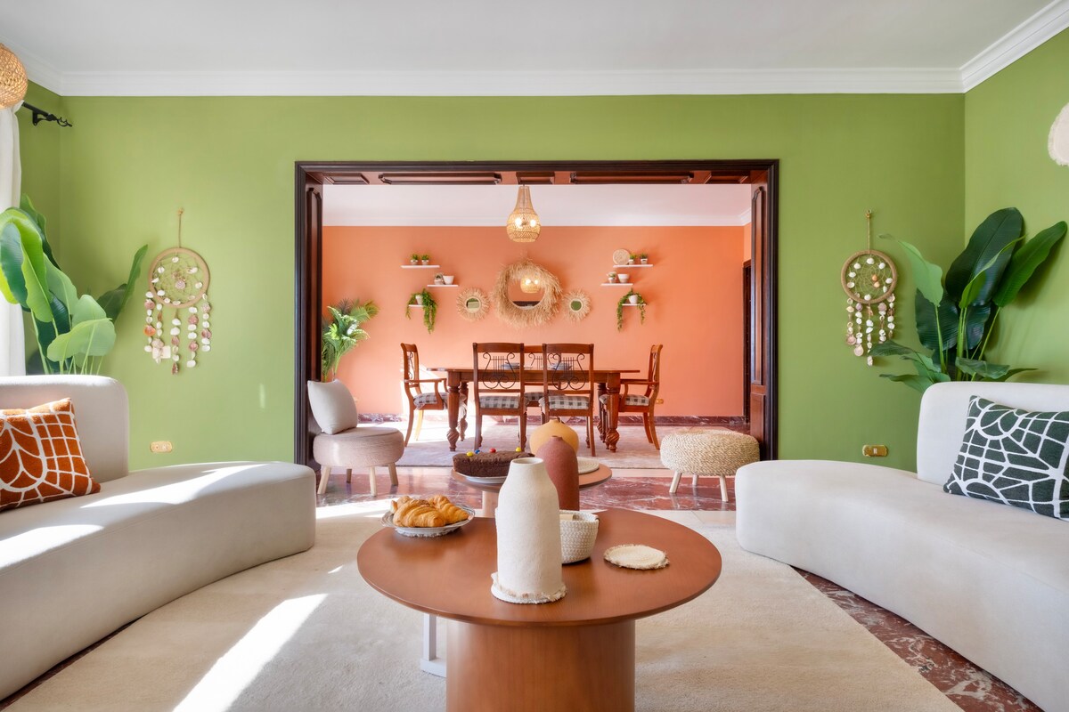 Youโll love my place because of the outdoor space, the neighbourhood, the comfy beds, and the huge space. My place is good for couples, business travellers, families (with kids), and big groups. Ask me about the tour guided trips to Pyramids, Grand Egyptian Museum, Sakkara, Old Cairo, Khan el Khalili, Museum of National Civilization, etc...