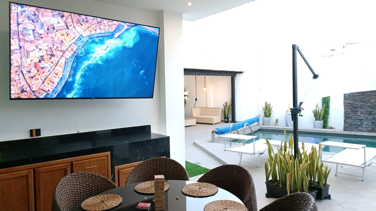Marae is a private space designed for enjoyment, ideal for families and groups of friends. It features a private pool, BBQ area, and social areas designed for sharing and relaxing. Enjoy a stunning 100-inch TV, perfect for movies or events. A modern, exclusive, and fully equipped setting, created for you to unwind, celebrate, and experience unforgettable moments in total privacy.