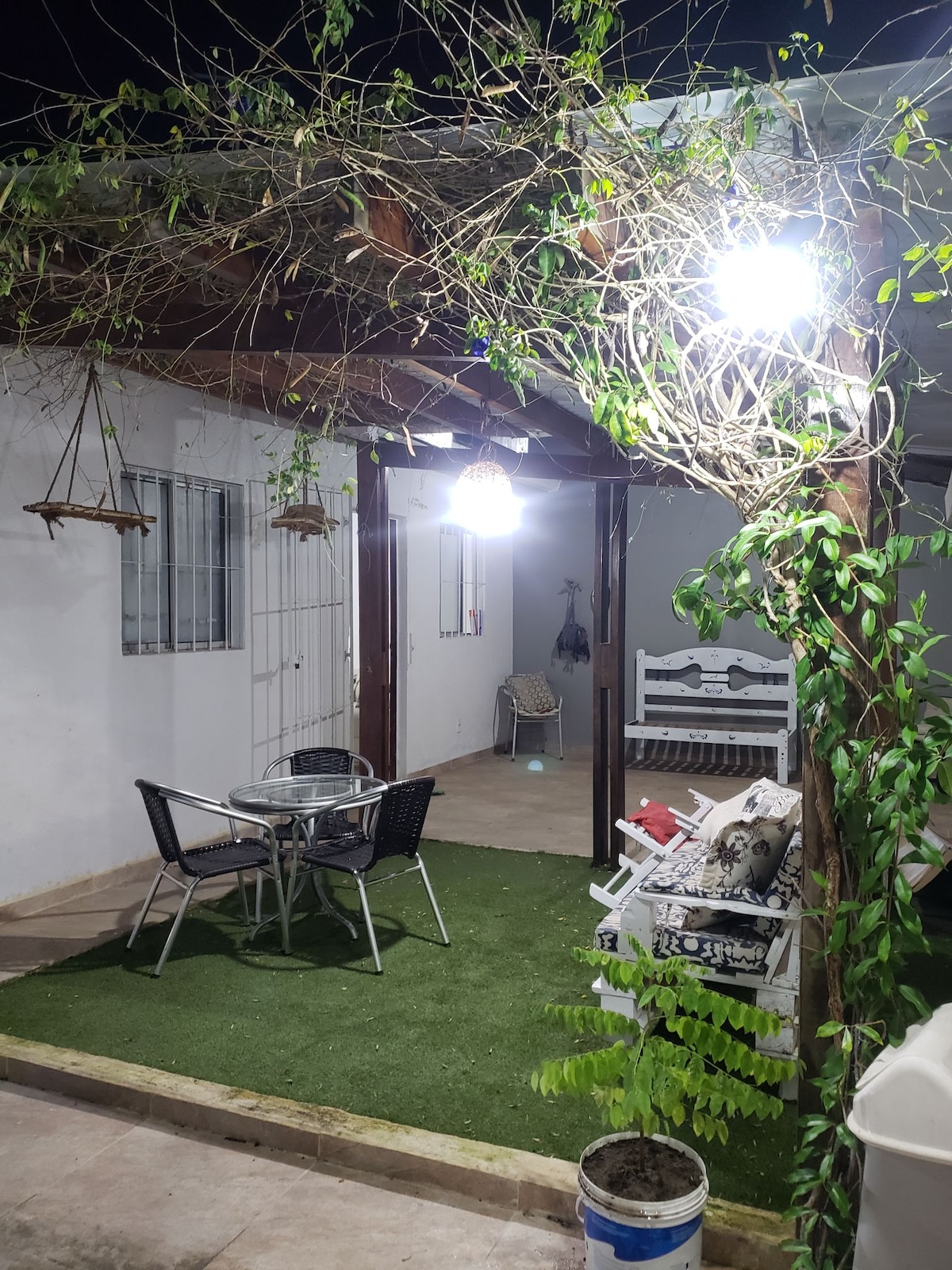The chalet has 01 bedroom, kitchen, bathroom,living room and a well ventilated balcony,the green villa and a very quiet place very airy, a beautiful garden with a hammock,swimming pool , parking area for barbecue. Very well located ,close to pharmacy, restaurants, surpe market and is 600 meters from the beach. Note: it does not have air conditioning and a fan, it has a washing machine, refrigerator, van, gelagua, sheets, a balcony for clothes, a simple but cozy place.