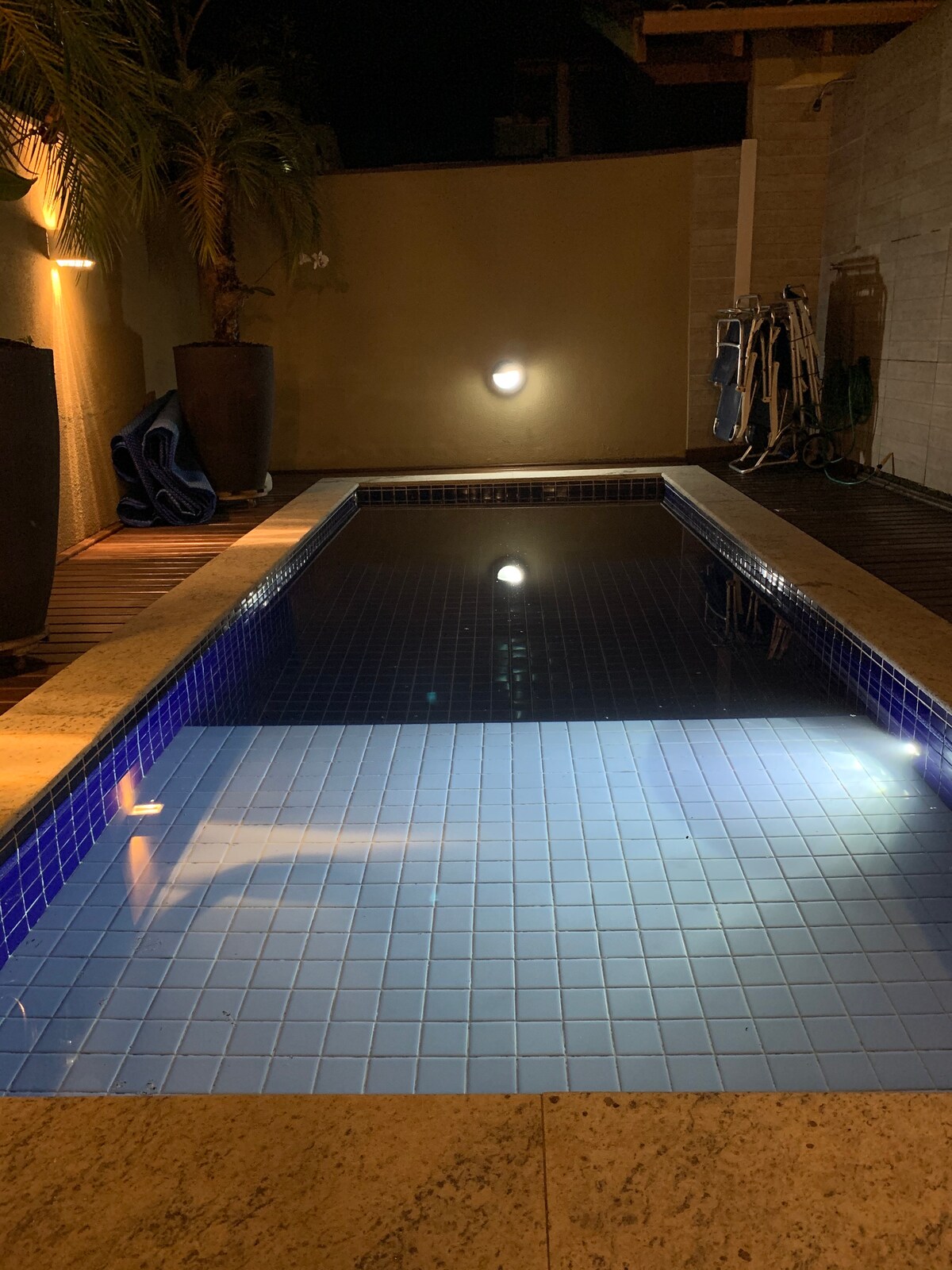 2 suítes e mezanino para 6 hospedes. Ar condicionado, Smart TV. Cozinha americana completa, varanda com rede e churrasqueira. Amplo gramado e estacionamento para 4 carros.Piscina privativa de 4X3 m., com espreguiçadeiras, mesas, cadeiras e guarda sol para refeições ao ar livre . Piscina protegida para segurança de crianças e pets.Taxa de R$250,00 para 2 pets. Podem ocorrer eventualmente falhas na internet, queda pontual de energia elétrica e barulhos de obras e outros nas vizinhancas