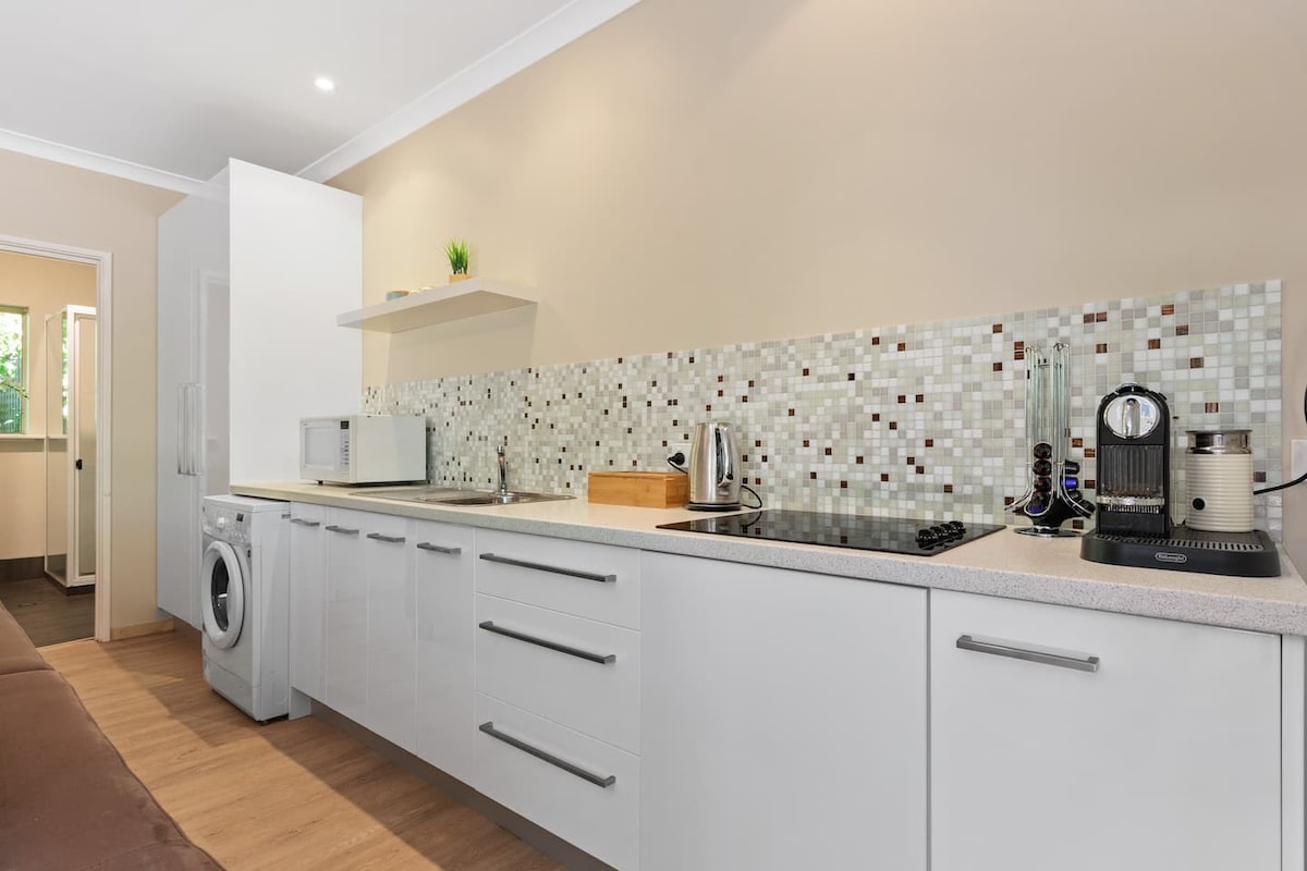 Ideal couples getaway with absolutely everything you need for the perfect stay in Margaret River! Refreshed, modern and spacious one bedroom Studio. Centrally located in the heart of the Margaret River region, just down the road from the farmers market! You will love the luxurious king bed, quality furnishings, the bright and modern bathroom, light filled open plan kitchen living area, and the private leafy bamboo garden courtyard & BBQ. Access to entire Studio, private yard & free parking