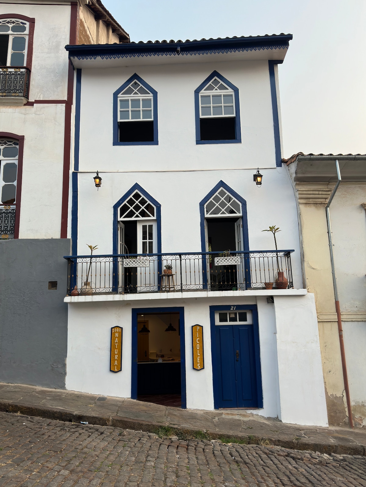 " Lindo sobrado colonial do século XIX, com 03 andares, localizado no centro histórico, na Rua Direita (eleita uma das seis mais belas), esq. com a Pç Tiradentes, próx. aos principais museus, igrejas, restaurantes, bares, padarias, farmácias e comércio da cidade. Recebe confortavelmente até 06 pessoas (ou mais sob consulta). A casa inclui: sala de estar, linda sala de jantar com vista panorâmica, cozinha, 02 Banheiros, 02 quartos, terraço com vista de todo o centro histórico. @solardapianista