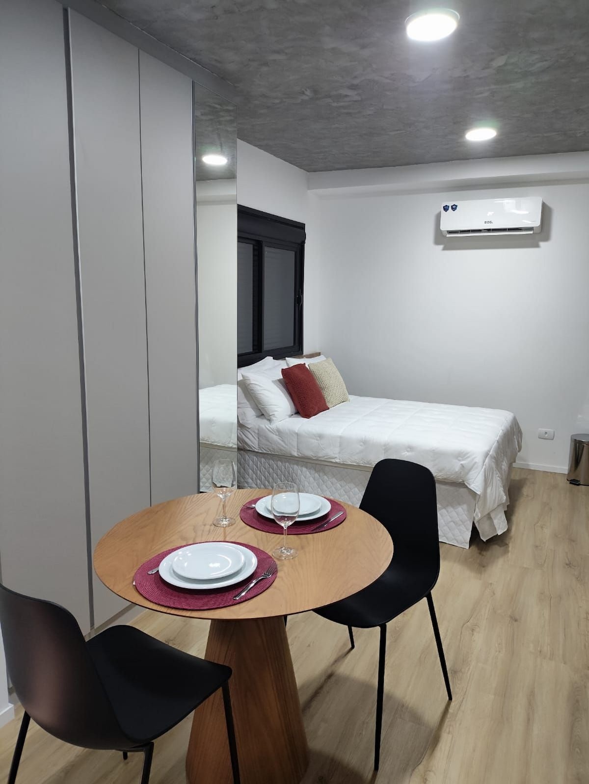 The townhouse (Vila Paraíso) is located on a quiet cul-de-sac with very little movement. It has several spaces for your accommodation, all decorated with great style, with everything new. In this listing, we show an elegant and practical ground floor apartment (19 m2). Guests will have quiet days with Italian-inspired decor. There are hospitals, tourist attractions (Horto Florestal, Theaters, Mosque, Praça das Antenas), bakeries, pharmacies, restaurants, bars, supermarkets and clubs nearby.