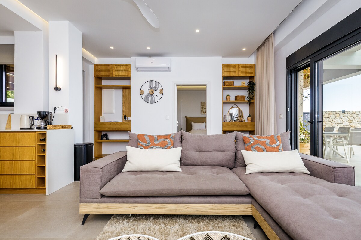Villa Meliades promises a dream getaway with stunning views of the Libyan Sea, a Cretan garden, and an infinity pool. The villa includes two master bedrooms, each with an en-suite bathroom. There is also a spacious storage area and a private parking spot. Equipped with a room-by-room climate control system, an eco-friendly organic septic tank, and solar panels, Villa Meliades is a true gem for those seeking a sustainable and luxurious escape. The Villa isn't suitable for kids ages 0-6 years old