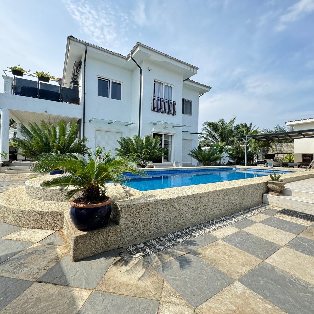 Petit Hambourg - Villa with pool - for your luxury vacation only 2.9 km from the beach. Enjoy your stay in this exceptional accommodation. A magnificent, modern guesthouse, a very comfortable haven of peace. A little Away from the hustle and bustle of Lomé. You rent a building with 3 bedrooms,for yourself and your travel companions (max 6 people) alone. Le Petit Hambourg is 2.9 km from the Turnaround Baguida Monument on the devego Road on a sandy road.