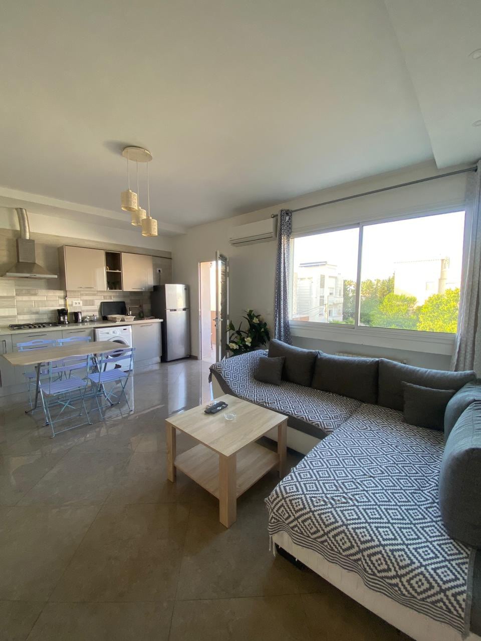 Un appartement moderne avec une suite un salon donnant sur la cuisine une salle d eau invité, situé au premier étage d un petit immeuble nouvellement construit de 2 étages . Le propriétaire habite au rez-de-chaussée le premier étage est RBNB, le deuxième étage un couple italien retraité. en face de la résidence de l ambassadeur de France orienté plein sud au centre de la Marsa à 5 mns à pied de toutes les commodités et 8 mns à pied de la plage.