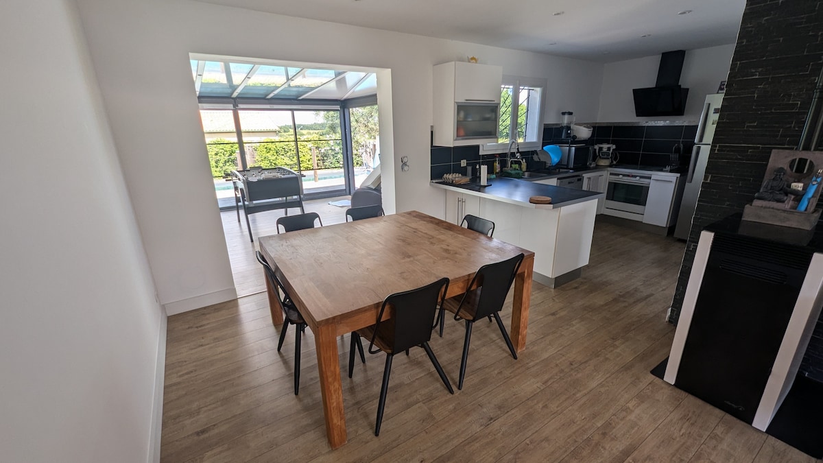 Relax with the whole family in the countryside at this peaceful place to stay with its own entrance and private parking. A large terrace and enclosed garden will welcome you. This accommodation consists of a large living room with equipped kitchen, living/dining room, 4 bedrooms, two with private shower room, TV, free Wi-Fi. Located in the center of the Bordeaux, Blaye and St Emilion triangle, it is also close to all amenities as well as the "Cabaret L'Ange Bleu". Looking forward to hosting you!