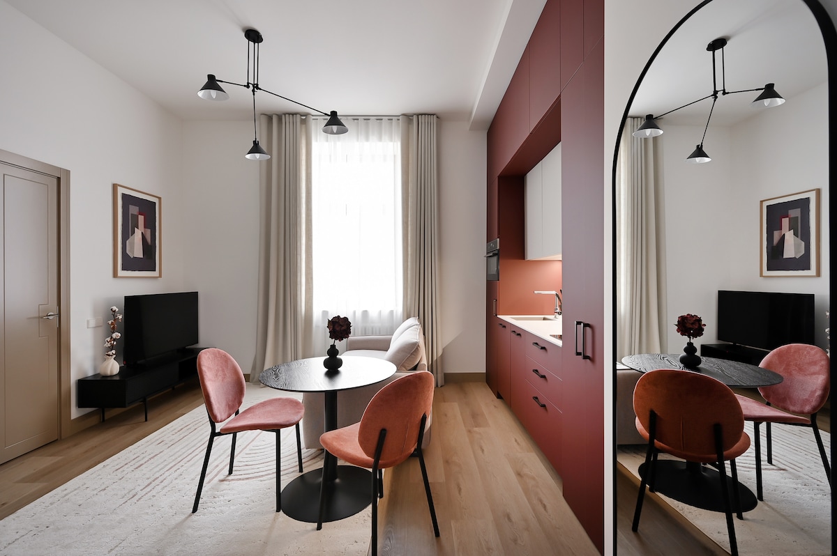 Kick back and relax in this calm, neat space in the city heart, next to Art Nouveau gems and surrounded with parks, top restaurants, bars of any kind and shopping centers - you will get all needed for vacation or staying for business. Apartments were built in April 2023 with high quality materials and wise design. Owner constantly invests her own soul in highest level of clearness, comfort and safety. Fully contactless checkin & free parking in nearest commercial parking will be a small bonus.