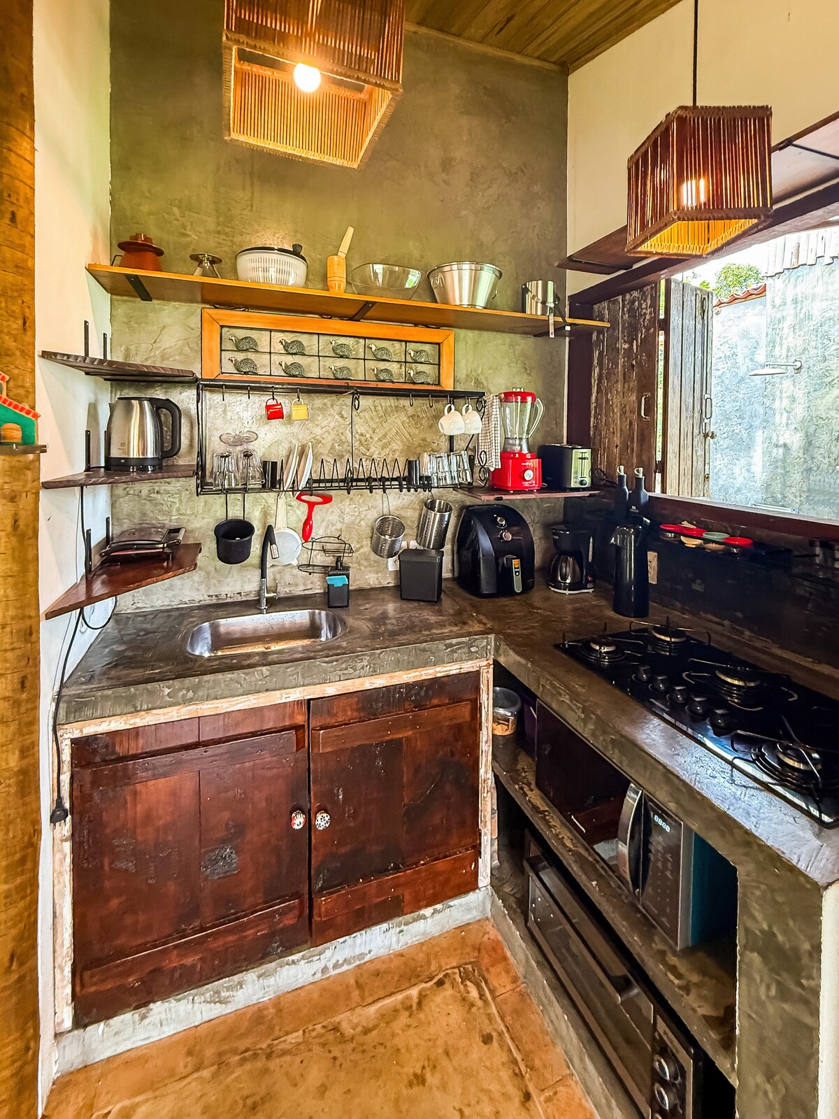 Rustic and comfortable decor. The house has a swimming pool, is well ventilated and bucolic. It has air conditioning in the master bedroom, hammocks on the balconies and in the living room, lawns, a garden shower, a barbecue grill, and the property is completely fenced, so you can bring your pet. It is a privileged place for its silence and tranquility, for those who seek peace, tranquility, and appreciation for nature. The house is on a corner and is located in the village, in the best area of Massarandupió, where the markets, restaurants and bakery are located.