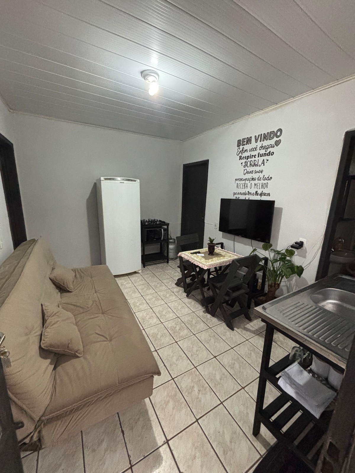If you are looking for comfort, safety and economy in Santa Maria, this is the ideal place. Strategic ✔️ location: close to the Regional Hospital, Praça Nova Shopping Mall, Barracks and Supermarkets. ✔️ Two bedrooms: 1 with a double bed, 1 with a single bed. American ✔️ kitchen equipped with minibar, microwave and complete utensils (stove: optional) ✔️ Wifi available and streaming TV.