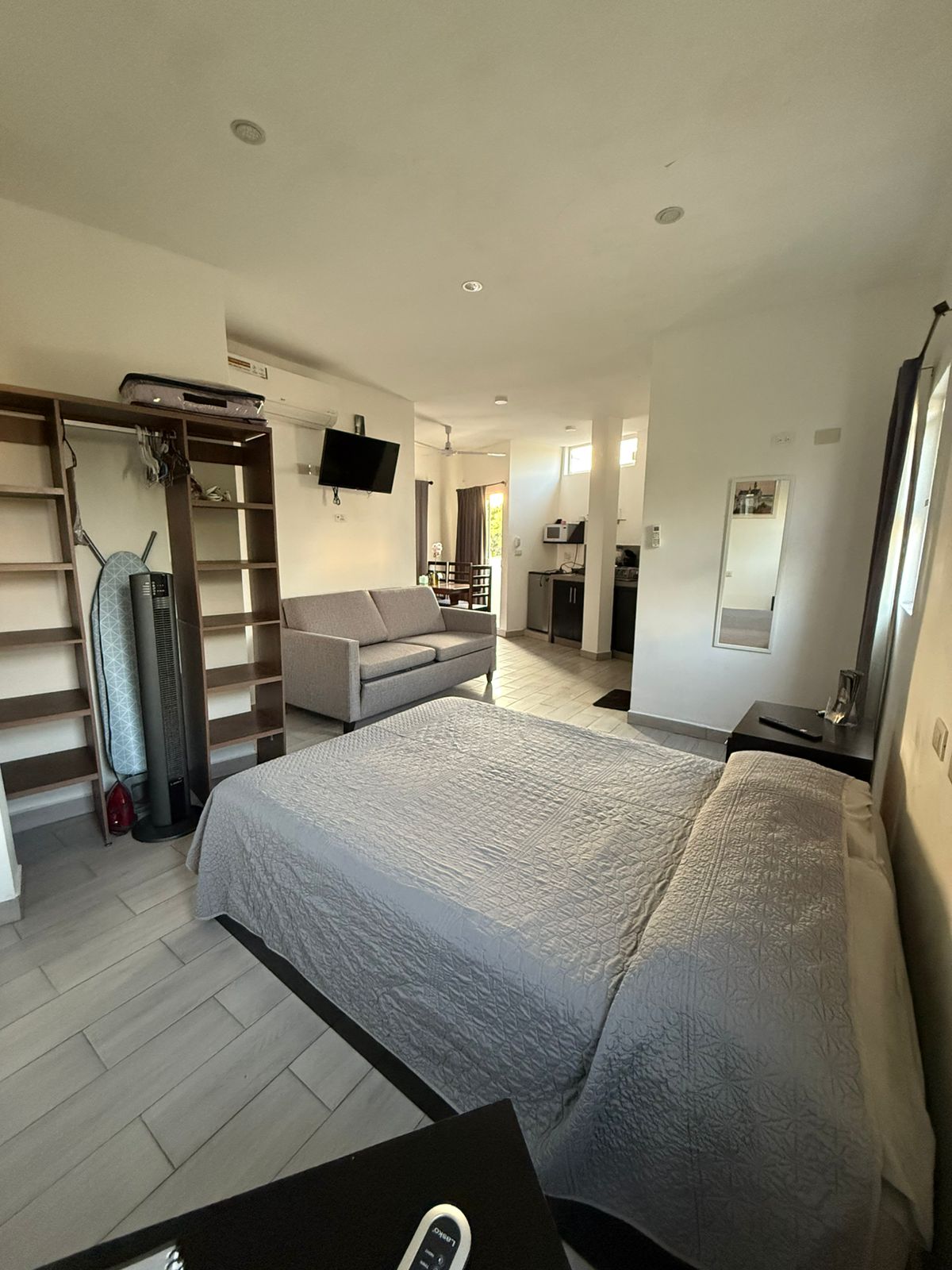 Enjoy this new and centrally located apartment with a private pool, surrounded by all kinds of shops, such as restaurants, diners, OXXO and the city's cathedral just a few meters away. It has ample parking, a king size bed, wifi, air conditioning, TV, minibar, table, and everything you need for a pleasant stay. The area is safe and has an electric gate. In addition to outdoor security cameras, for guests' peace of mind.