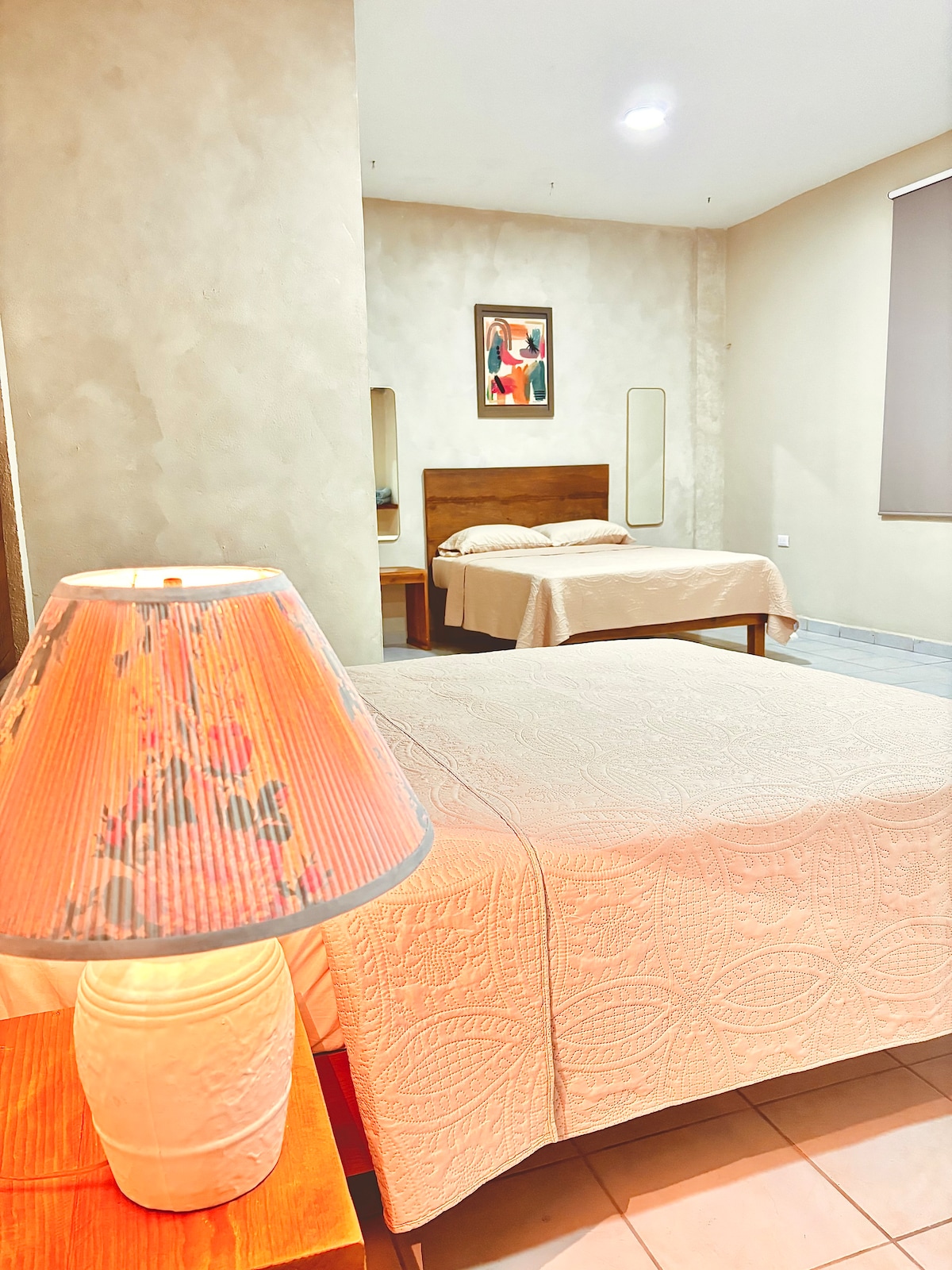 Welcome to our accommodation in the heart of Ciudad Valles, San Luis Potosí. This room has been designed with comfort and functionality in mind. In the downtown area, minutes away from the main tourist attractions and restaurants. We have private parking with a gate. Keep in mind that there is a bar downstairs, so there may be noise, especially on weekends There is also a construction site on the same property at the moment.