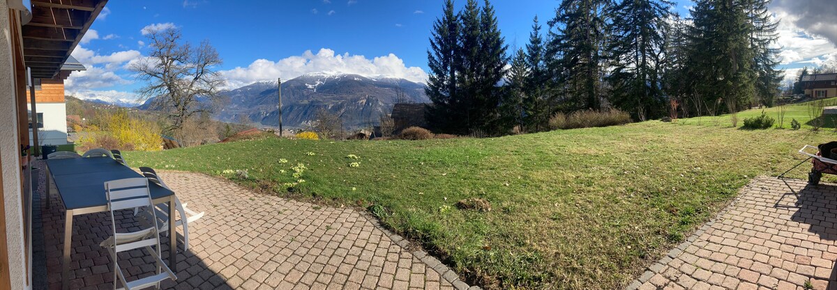 Located at 1,120 m altitude, this accommodation benefits from pleasant tranquility with a superb view of the Valais Alps. Close to the forest and the Bisses, it will delight walkers. You have a free covered parking space. A 10-minute drive away you will be in the center of Saint-Germain/Savièse where there are many amenities. In addition, Sion, Anzère, Cran-Montana are only 20 minutes, 30 minutes and 35 minutes away, respectively.