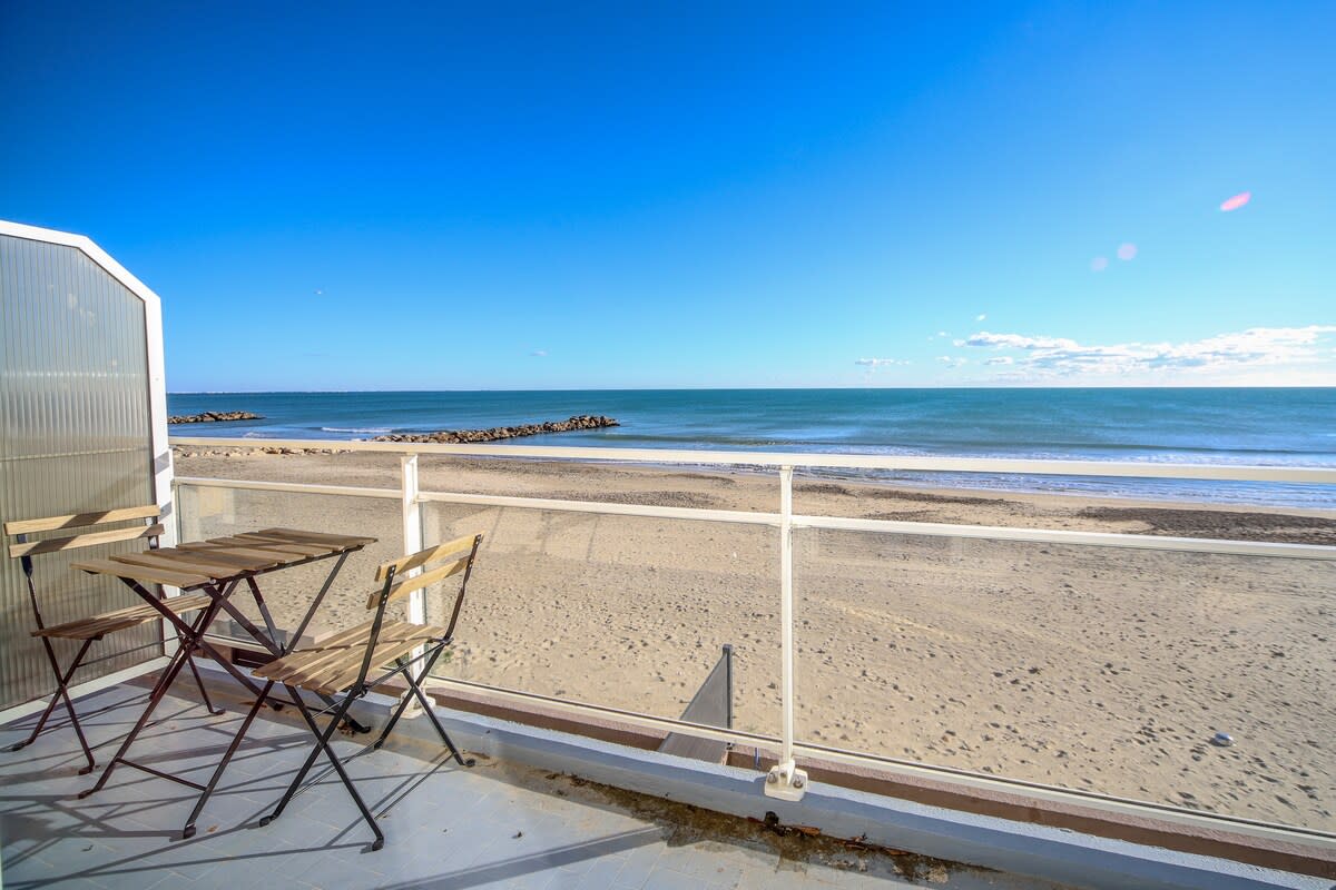 A magical view of the sea and the beach from an F3 apartment on the 1 st floor of a residence of 4 apartments, very comfortable, bright, reversible air conditioning in each room, recessed bay windows. Beautiful terrace, tables, chairs. A private parking space Direct access to the beach by a staircase overlooking Roquilles beach. Located between Carnon and Palavas-les-Flots, Carnon Ouest beach or Roquilles beach on the right (at the edge of Palavas)