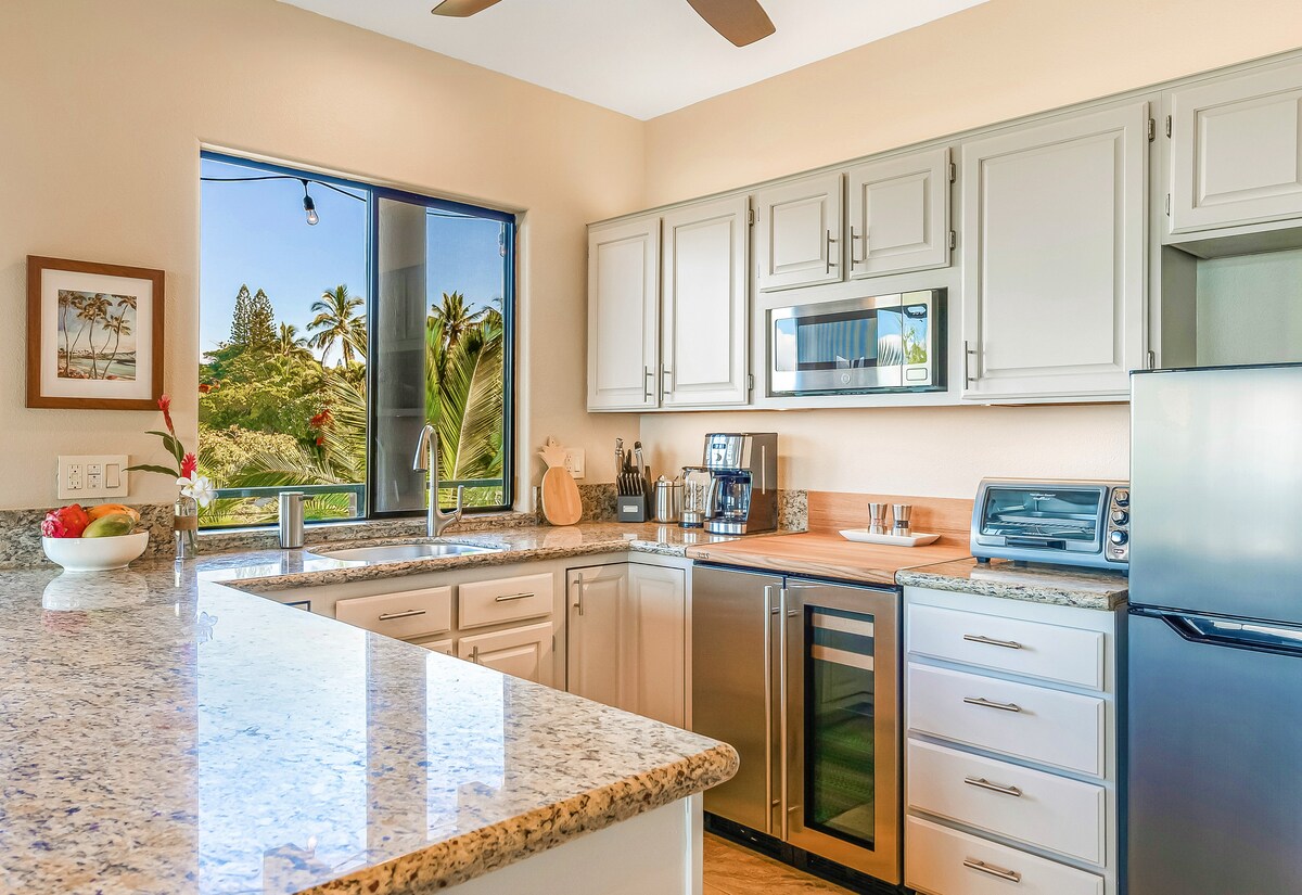 Live like a local at the Ocean Blue Ohana - the private first floor of this amazing Hawaiian pole home on a half acre property in South Maui. As you enter the space, you will be drawn to the sweeping panoramic ocean views. You are sky-high, perched 500 feet above sea level, looking at the most glorious views of the neighboring islands, mountains, coastline, and Maui's amazing skyline. To top it off, you are 5 minutes from the Wailea Resorts and beautiful golden sand, crystal clear beaches.