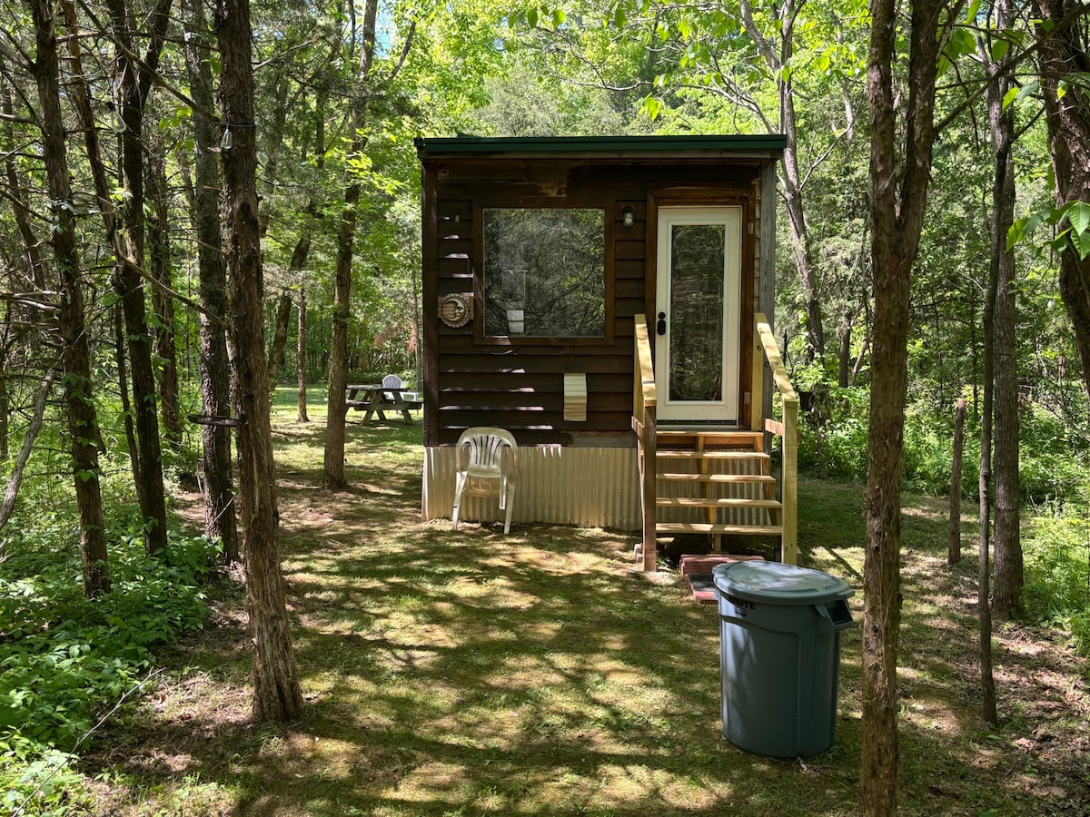 MoonSpell Tiny House – Cozy Short‑Term Rental in Columbia TN. 2 mi from I65. 180 sq ft downstairs plus 72 sq ft loft w/full size bed. Downstairs Futon/sleeper w/cupholders & USB ports. 42" TV with Roku/Internet. Fridge, Induction Stove & Microwave. BR toilet & shower. Private parking w/trail to Moonspell. Walking trails on property. Local attractions: Cheeks Bend hiking trails, Pickers Creek Winery, Mama's Country Dance Club, Higher Pursuits canoeing, Duck River. Several Wedding Venues in area.